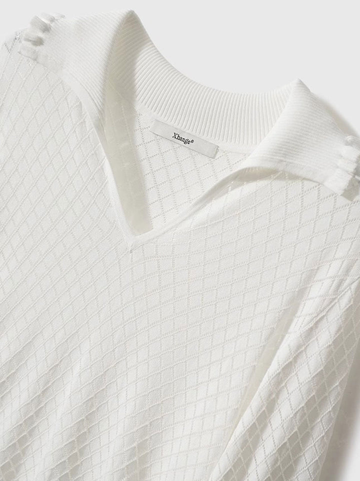 Ashley Classic V-Neck Hollow Solid Color Knitted Top