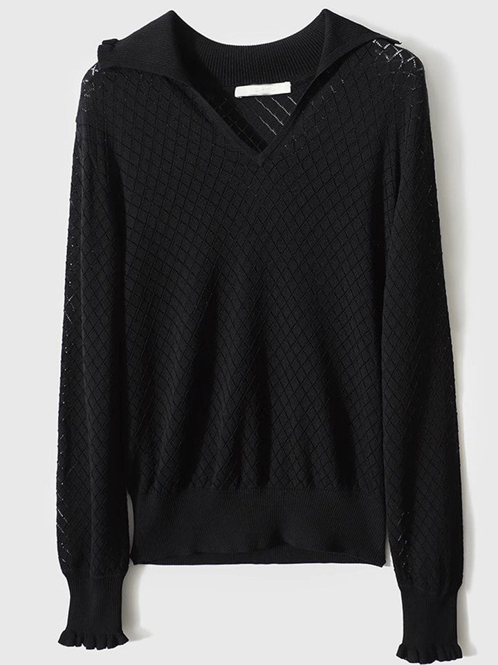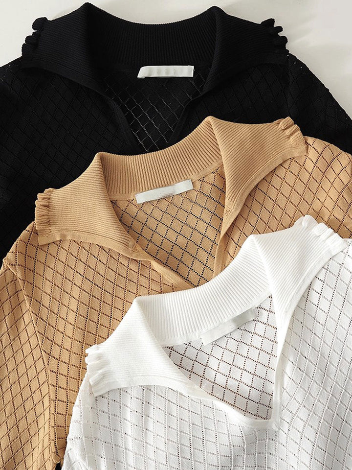 Ashley Classic V-Neck Hollow Solid Color Knitted Top-Camel