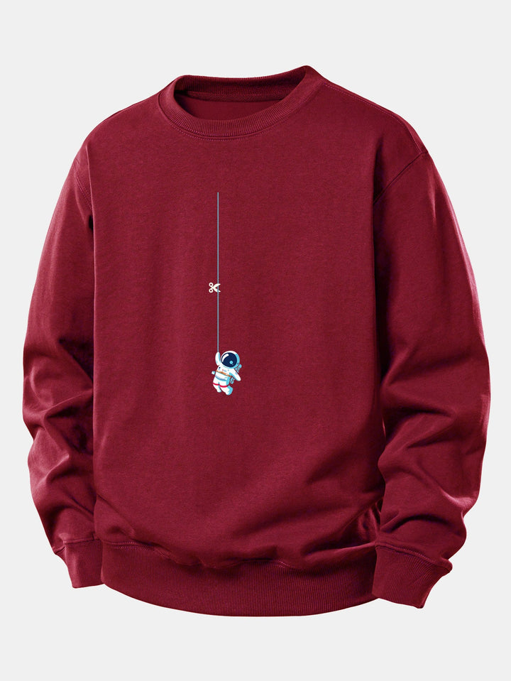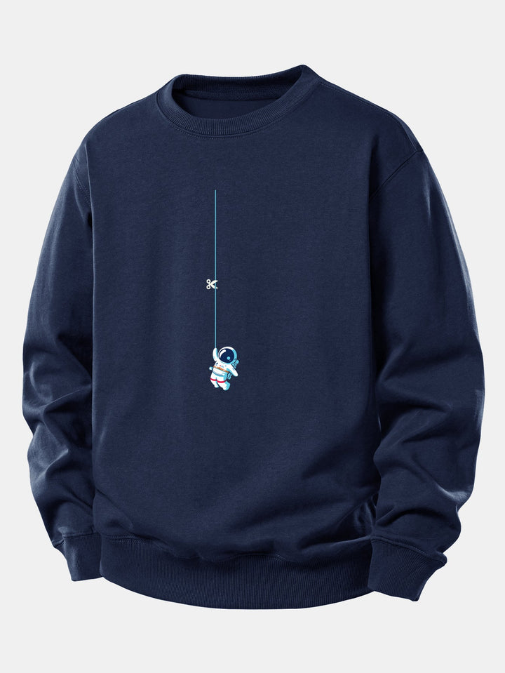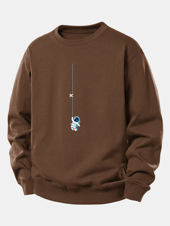 Take your style out of this world with the astronaut on a rope print relax fit sweatshirt. Featuring a fun astronaut graphic and a laid-back silhouette, this sweatshirt blends creativity with everyday streetwear comfort.