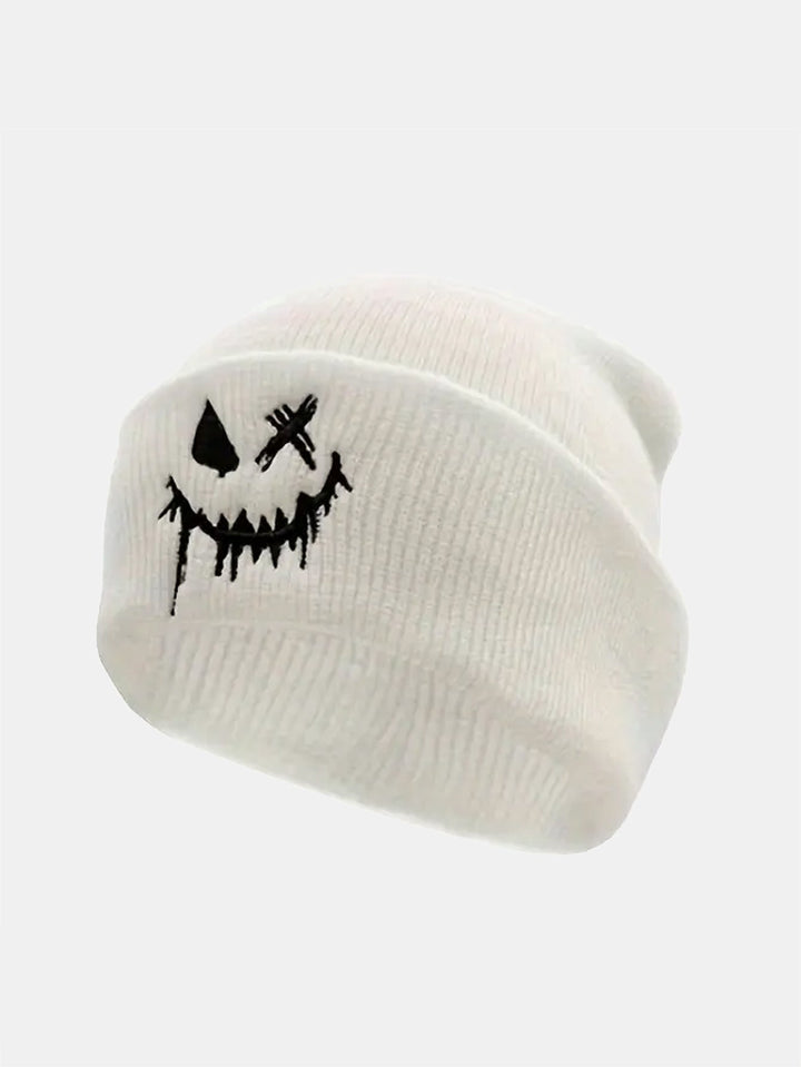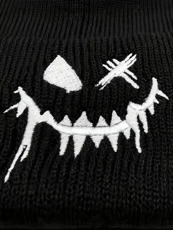 Bonnet Tricoté avec Broderie de Visage de Fantôme Terrifiant