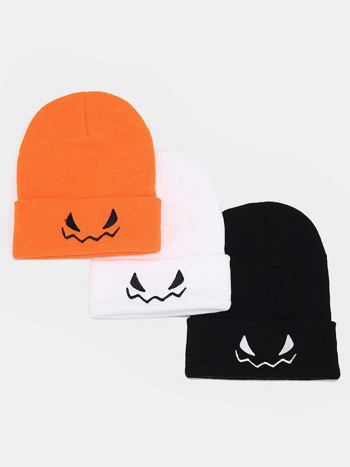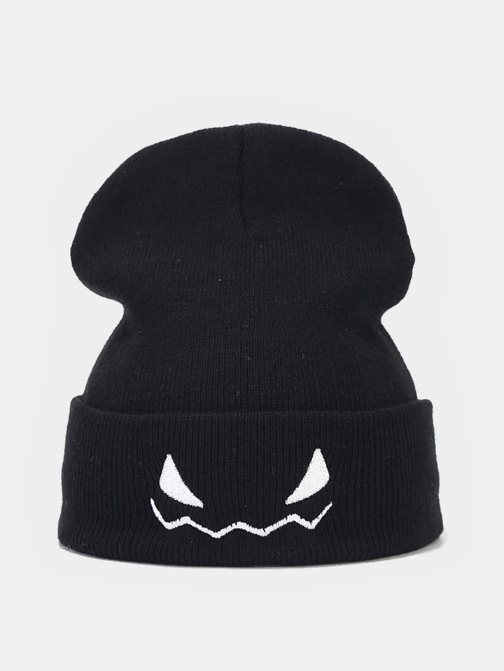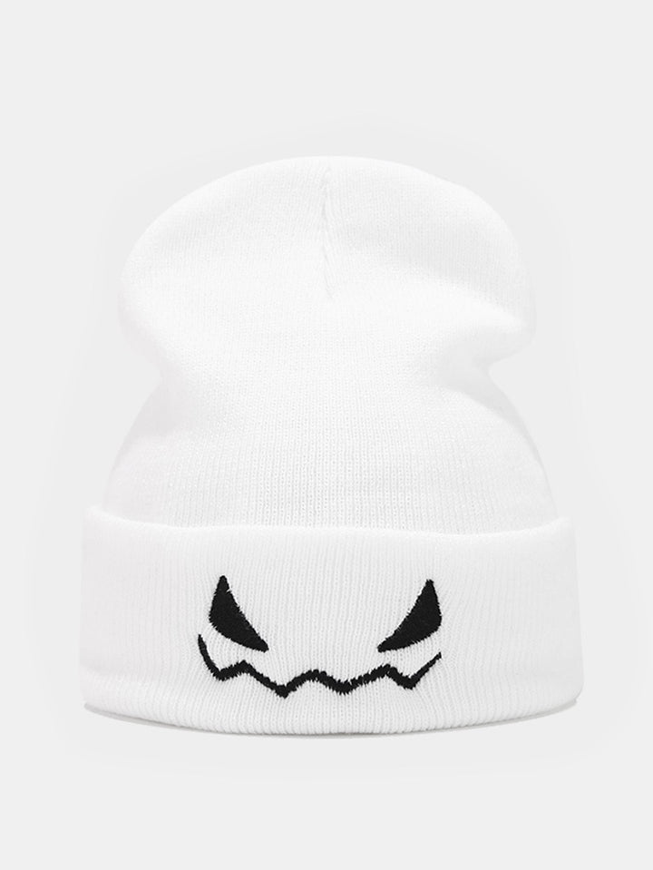 Bonnet Tricoté Émbroidé avec Visage de Fantôme Terrifiant