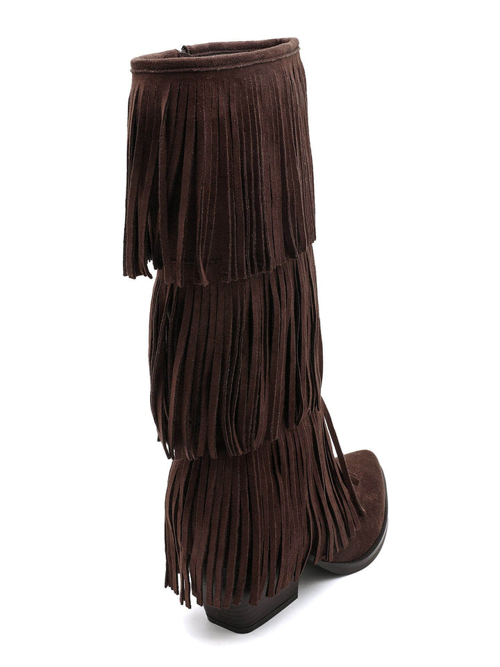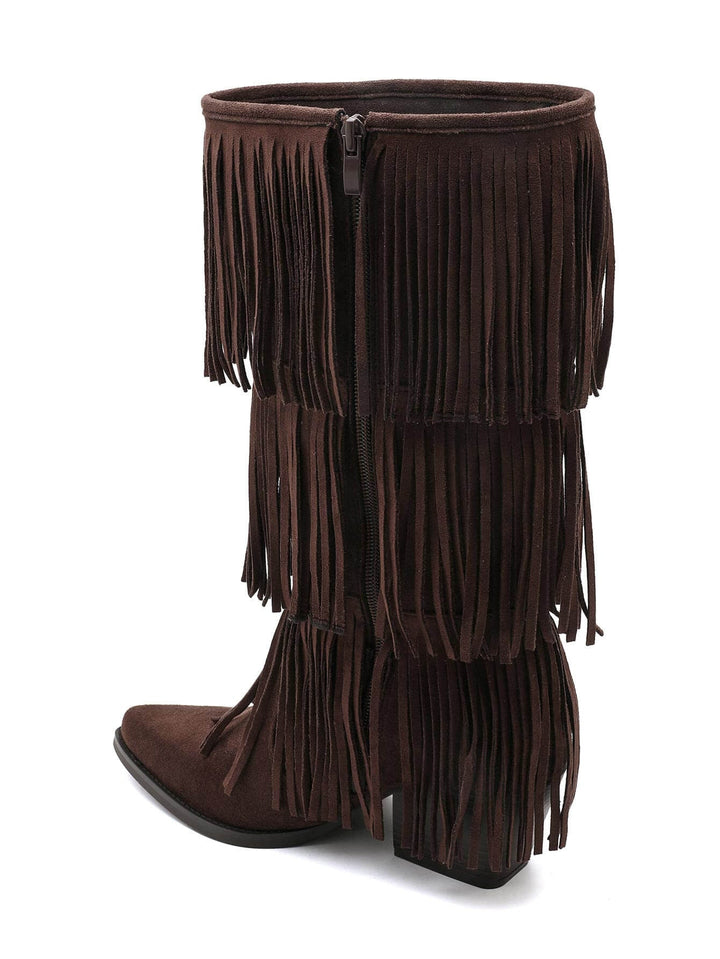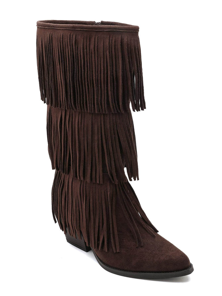 Ces Bottes Fringées sont un véritable showstopper. Entièrement entourées de franges, elles apportent mouvement et style à votre tenue. Fabriquées en suedine douce, avec une coupe confortable et un talon subtil pour un plaisir quotidien.