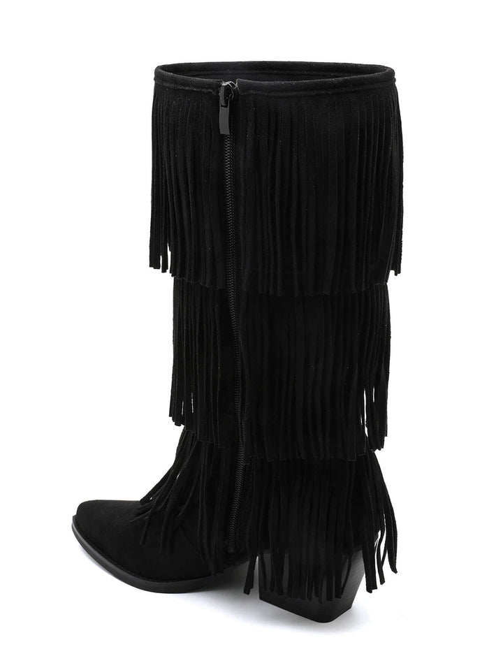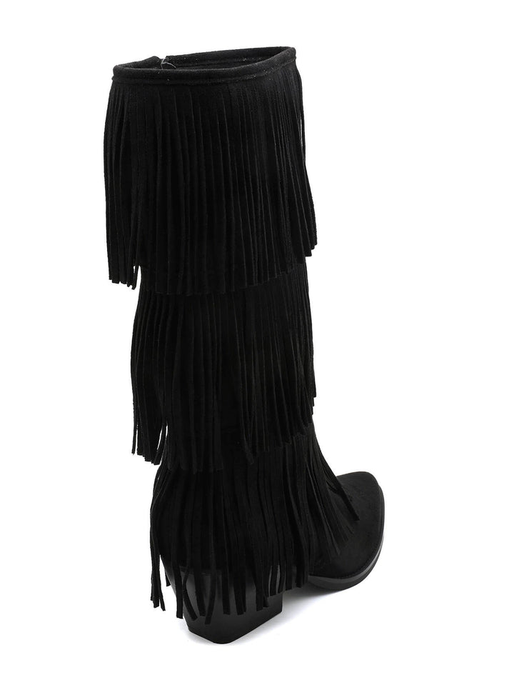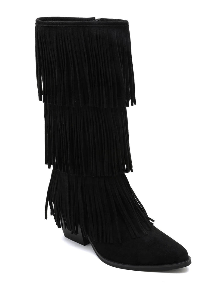 Ces Bottes Fringes sont un véritable showstopper. Entourées de franges de haut en bas, elles apportent mouvement et style à votre tenue. Fabriquées en suedine douce, avec un ajustement confortable et un talon subtil pour un plaisir quotidien.