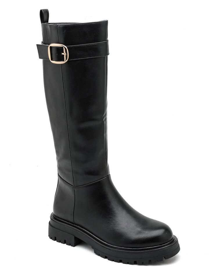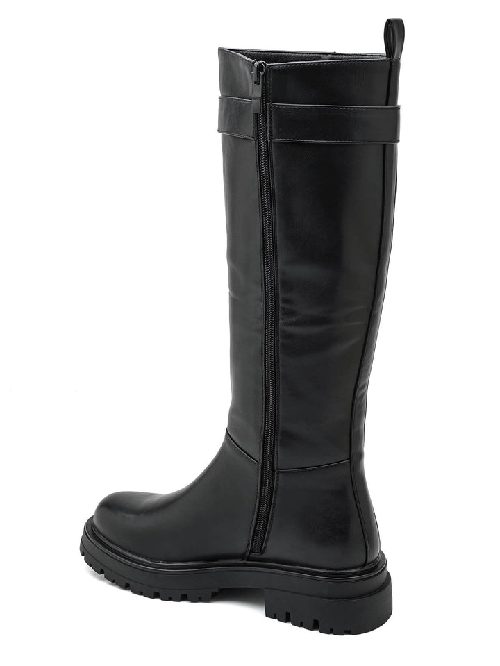 Découvrez l'élégance avec attitude avec les Bottes Hautes Noires Saar. Cette botte haute stylée en noir intense combine un design audacieux avec des détails raffinés : la large boucle ajoute du caractère, tandis que la tige haute crée une silhouette longue et élancée. Parfaites pour ces jours où vous voulez vous démarquer — sans compromettre le confort.