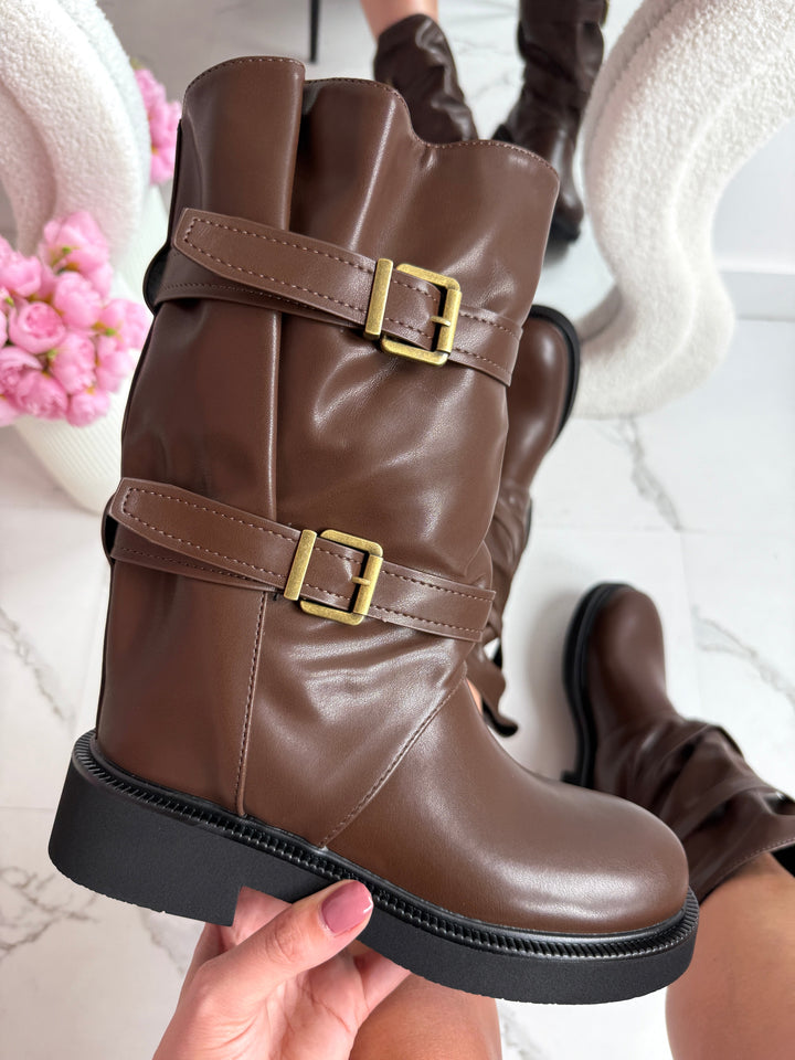 Affichez un style à la fois chic et audacieux avec nos Bottes Nova Boucle. Ces bottes mi-hautes allient un look décontracté à un style robuste grâce à leurs fermetures à boucle, offrant ainsi le parfait équilibre entre mode et confort. Fabriquées en simili cuir souple avec une doublure douce et une semelle robuste - idéales pour des tenues décontractées ou audacieuses.