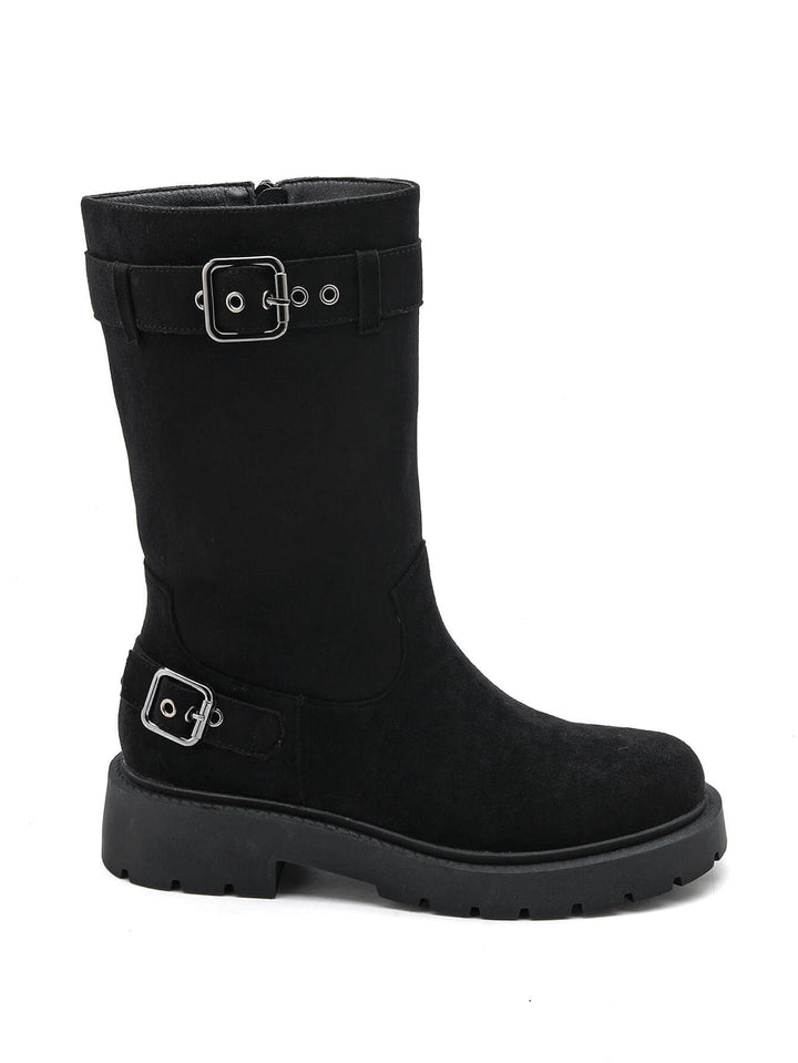 Entrez dans la nouvelle saison avec style avec ces bottes mi-hautes avec boucles. Les détails de boucles robustes donnent à ces bottes un look audacieux, tandis que le doux matériau en suédine ajoute une touche élégante. Parfaites pour une tenue décontractée avec flair ou comme une déclaration sous une robe !