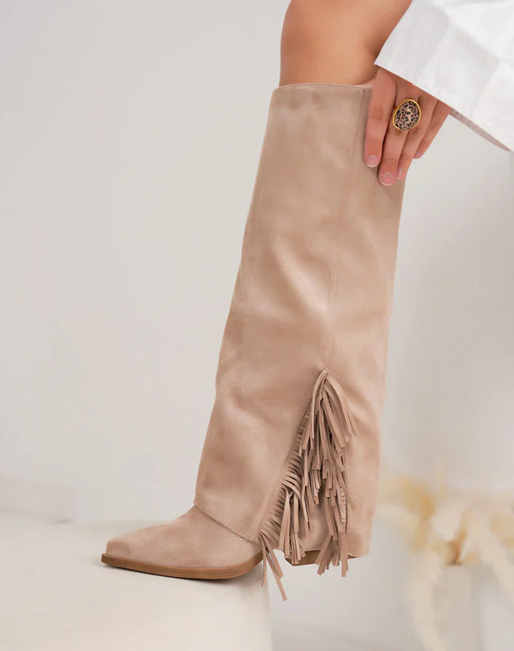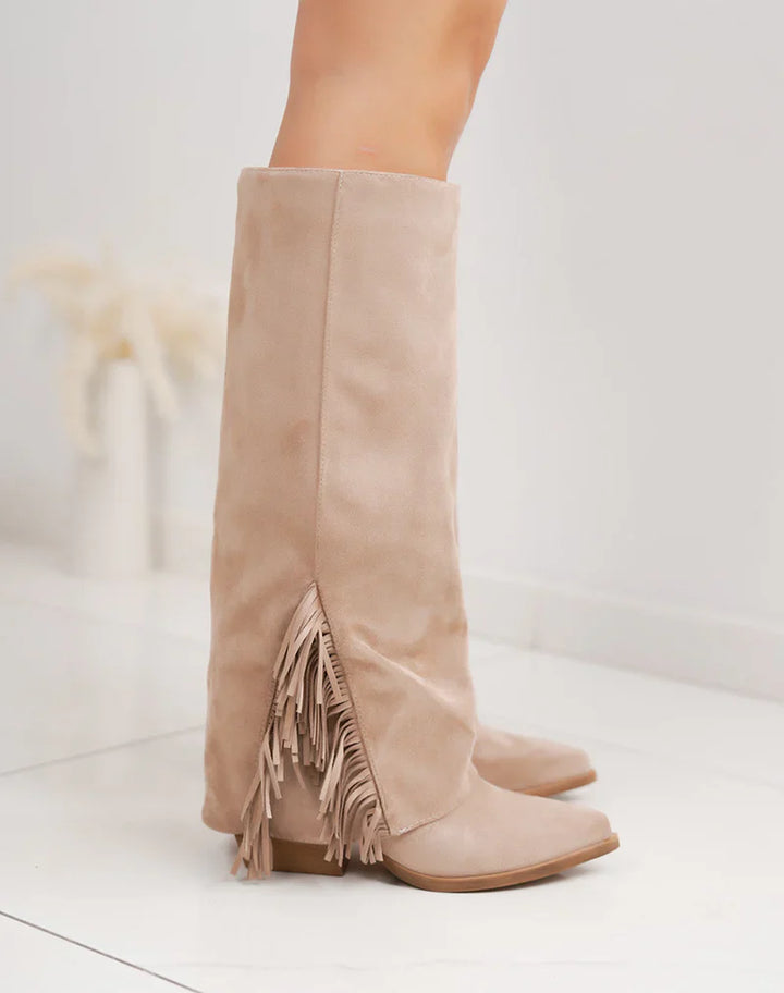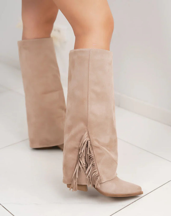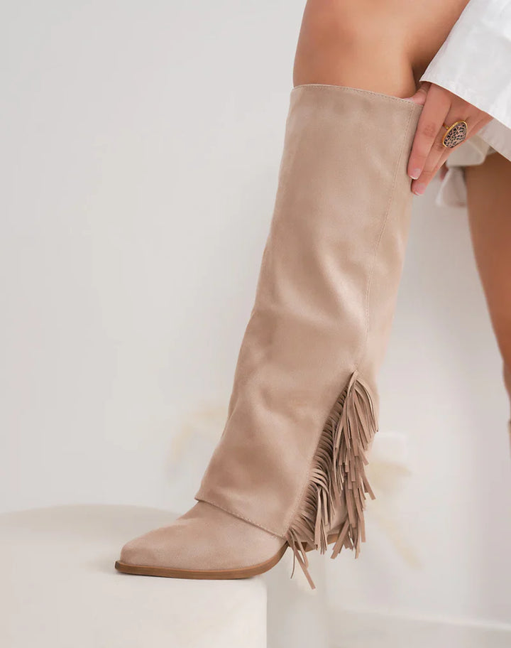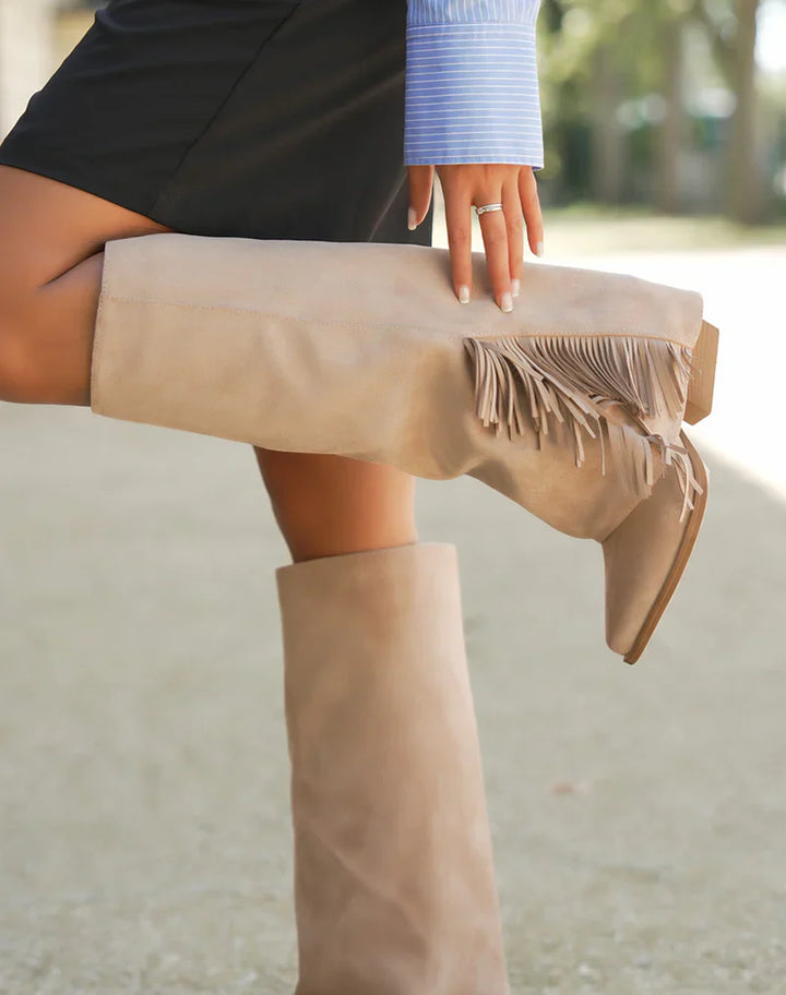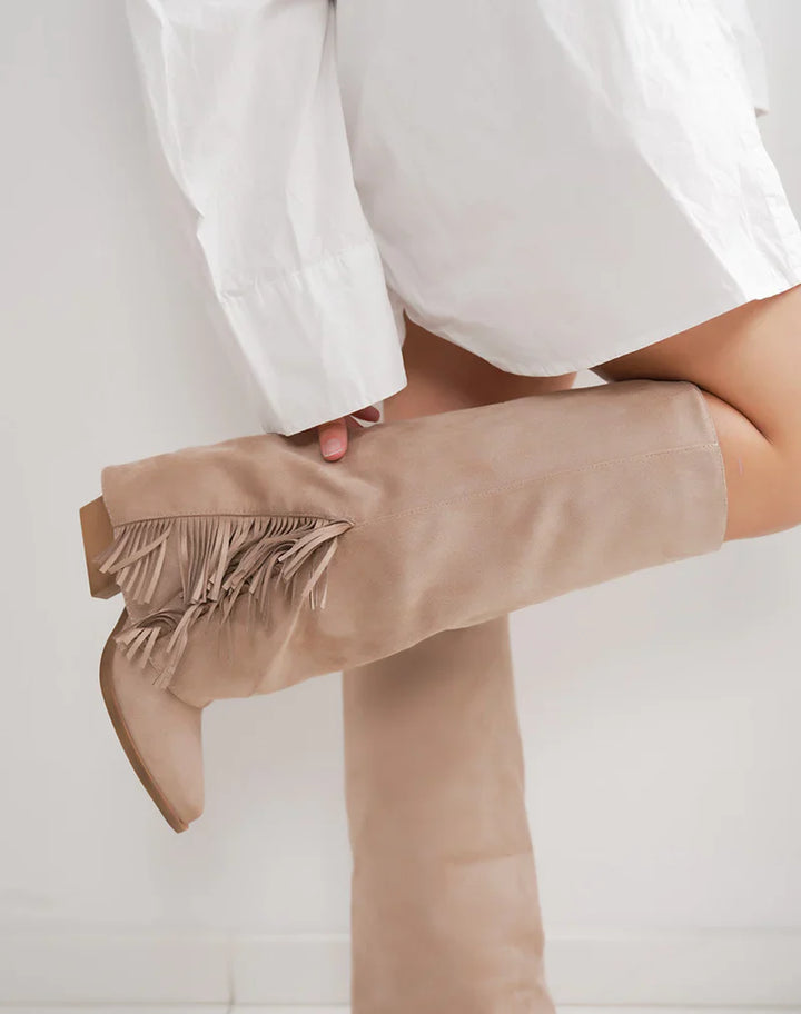 Les Bottes Misha sont le mélange parfait de style et de confort. Fabriquées en suédine souple avec un détail de franges élégant sur le côté. Le talon bloc de 6 cm offre une longueur supplémentaire sans compromettre le confort de port.