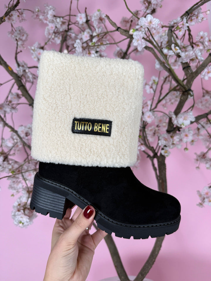 Découvrez le mélange parfait de chaleur et de style avec nos Bottes Tutto Omslag. Ces bottes hautes sont ornées d'un doux revers en teddy pour un look saisissant. Grâce au talon confortable de 6 cm et à la plateforme de 2 cm, vous êtes assuré d'un ajustement élégant mais stable.