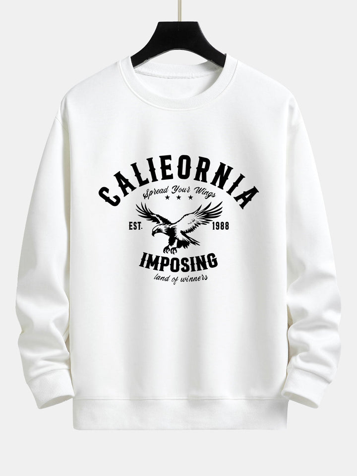 Design audacieux : Ce sweatshirt présente un graphique accrocheur d'aigle et le mot ''Californie'', alliant confort décontracté et style américain.