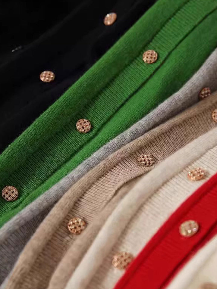 Cardigan Tricot Classique à Col Rond Couleur Unie - Rouge