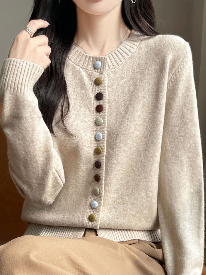 Cardigan tricoté à boutons colorés et col rond Sophia Classic