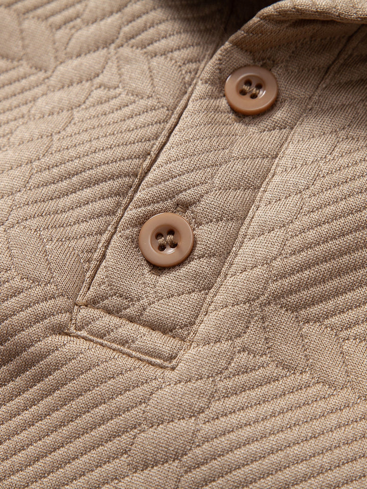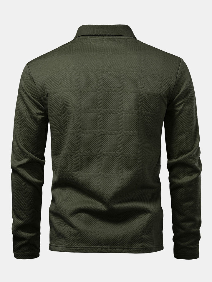 Élevez votre style smart-casual avec ce polo à manches longues, orné d'un motif géométrique en jacquard raffiné. Confectionné dans un tissu doux et respirant, il allie confort et élégance.