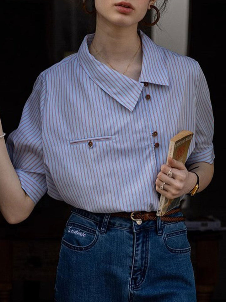 Chemise Rayée Classique à Col Incliné Caroline