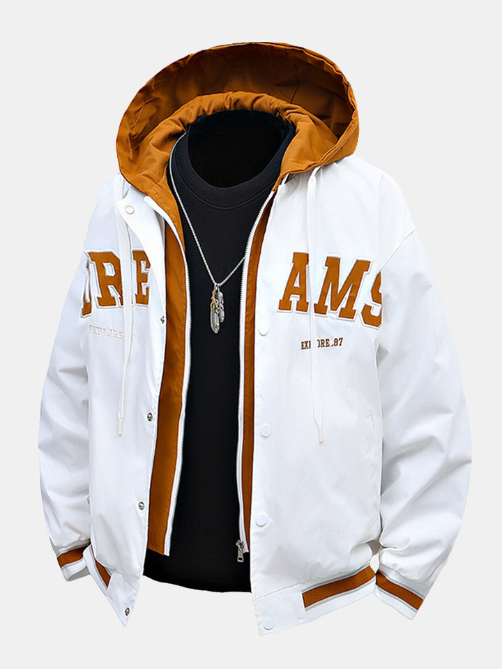Contrast 2 In 1 Hooded Baseball Jacket