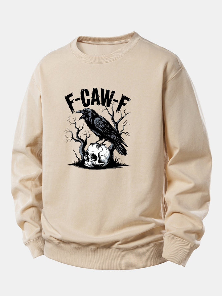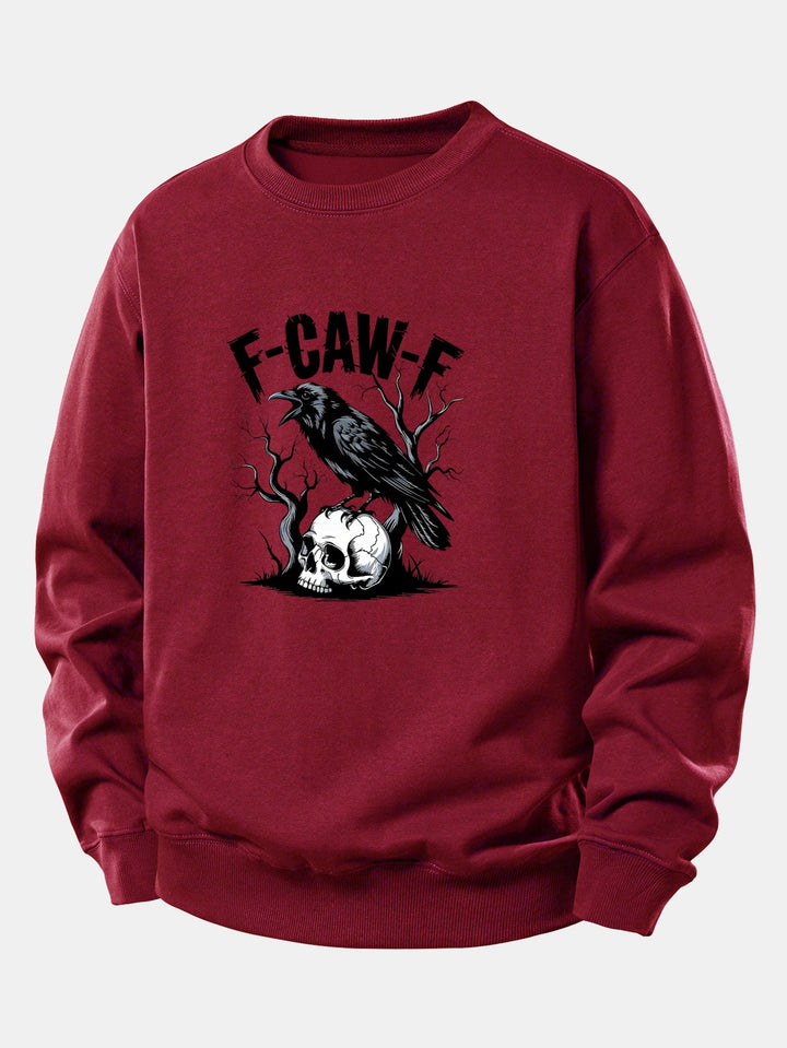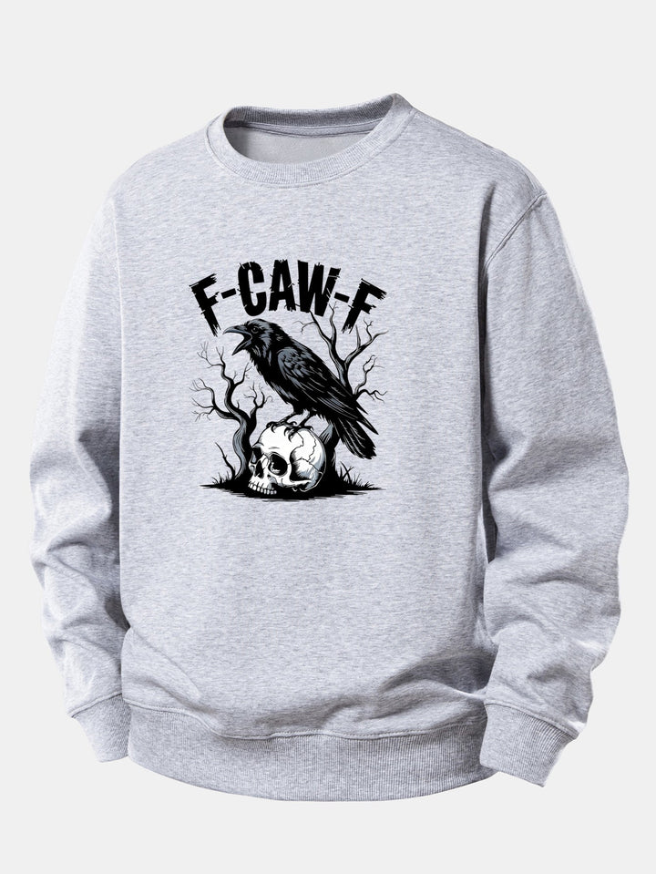 Add a bold statement to your streetwear with the crow skull print relax fit sweatshirt. Featuring a striking crow and skull graphic with a relaxed silhouette, this sweatshirt combines edgy style with all-day comfort.