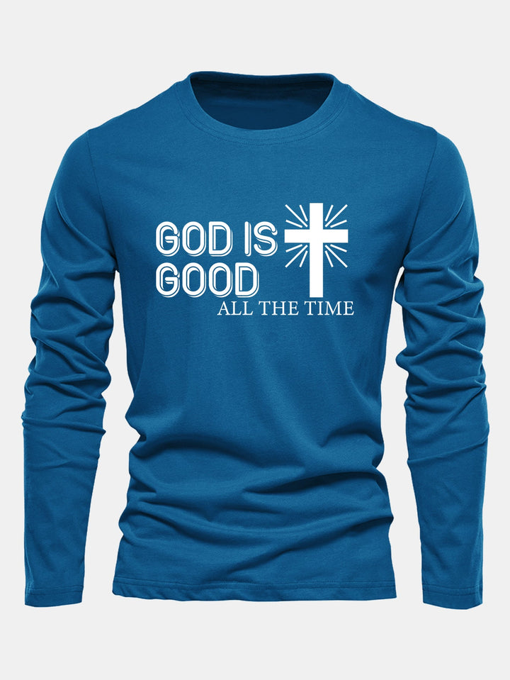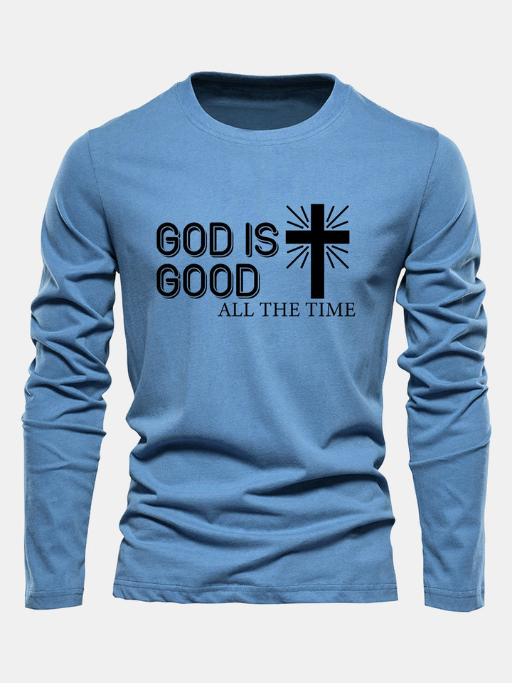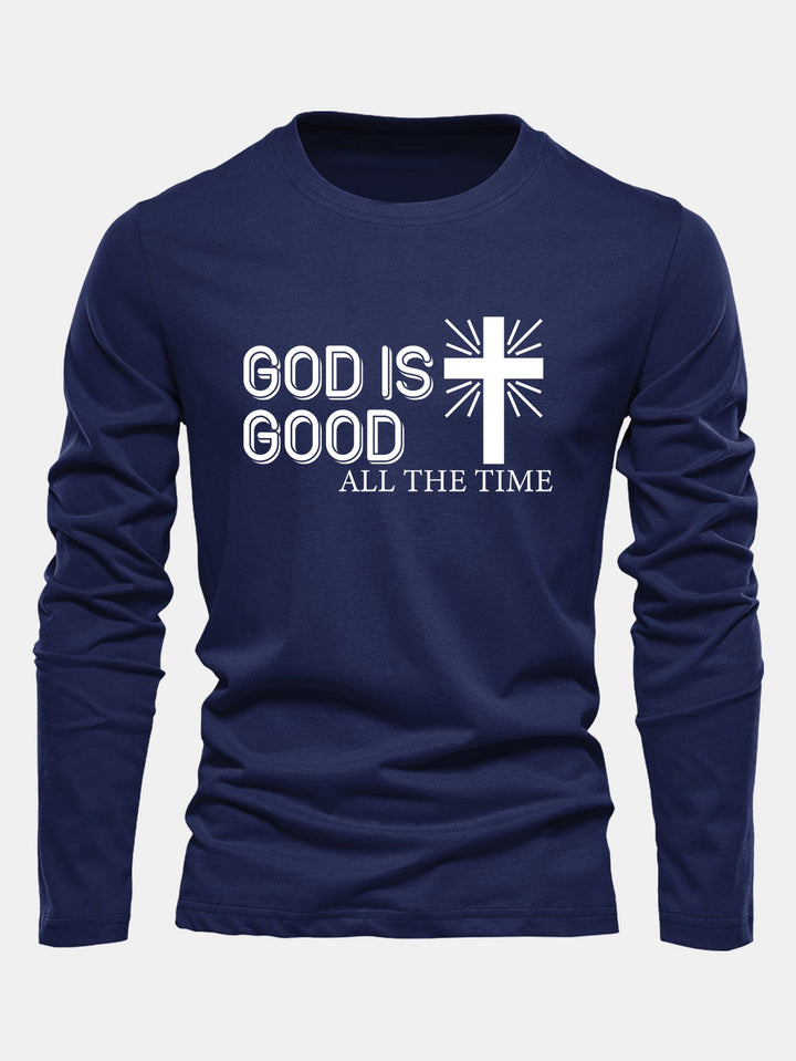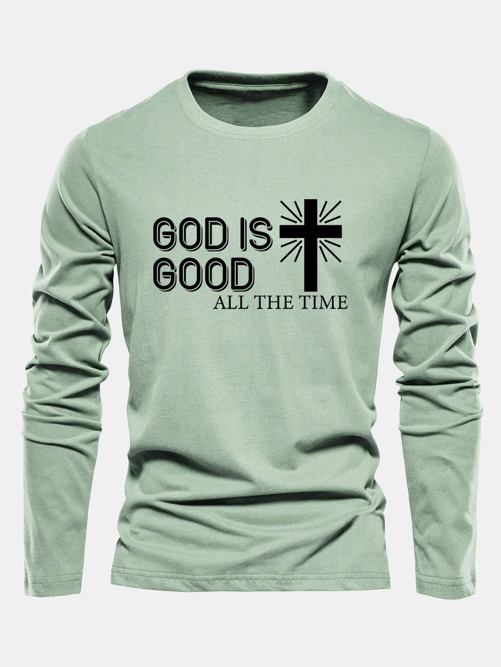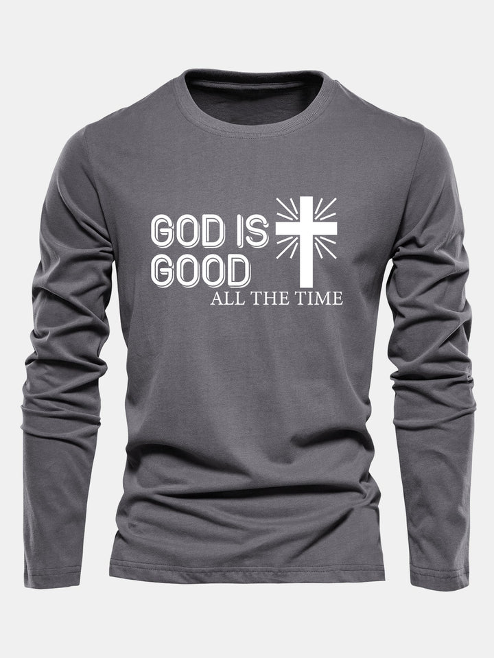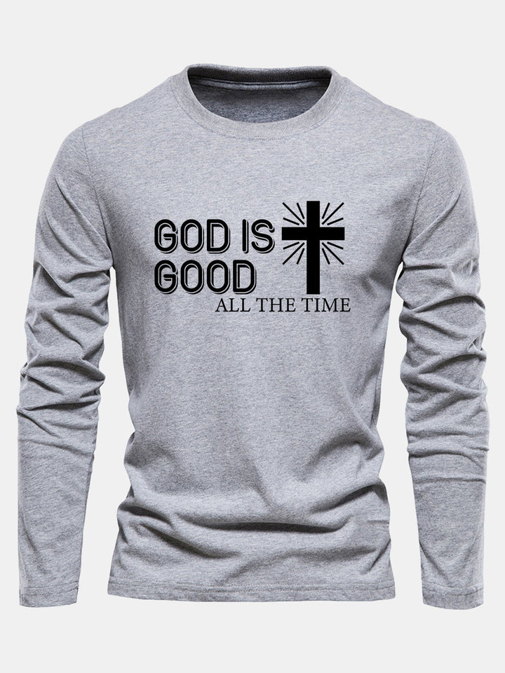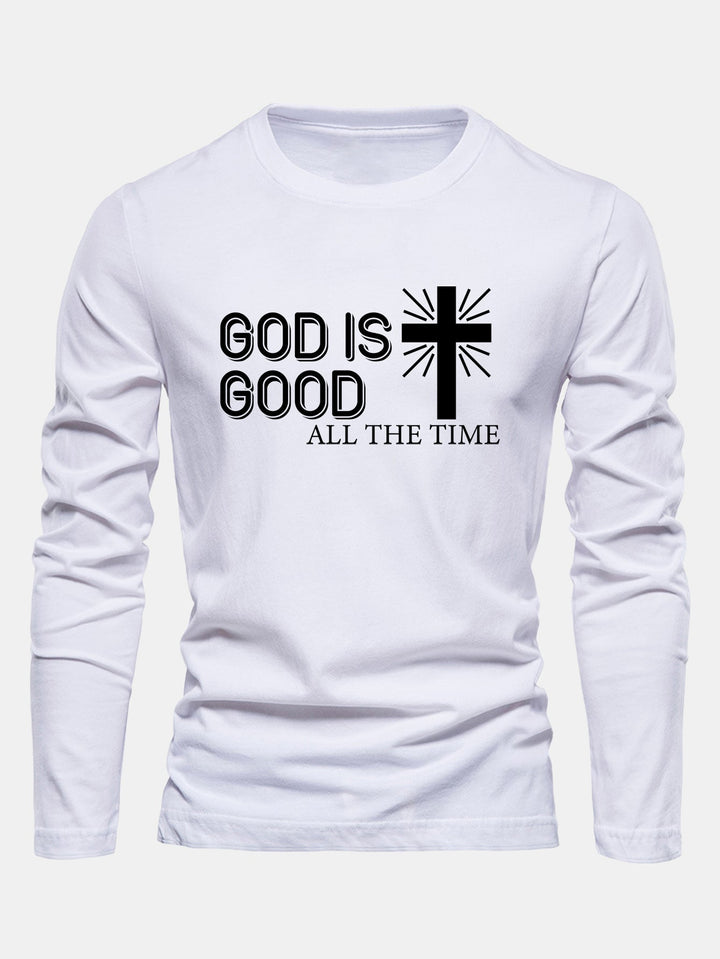 Long Sleeve God Is Good Cross Print Cotton T-Shirt