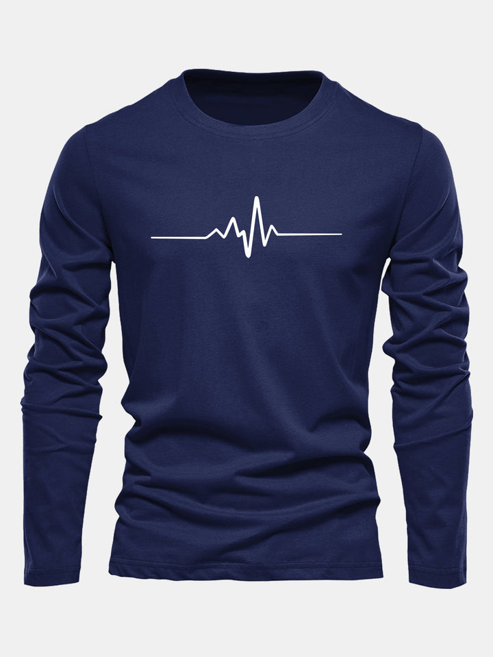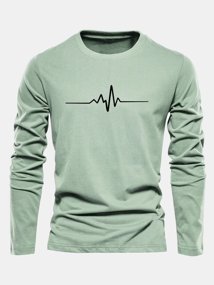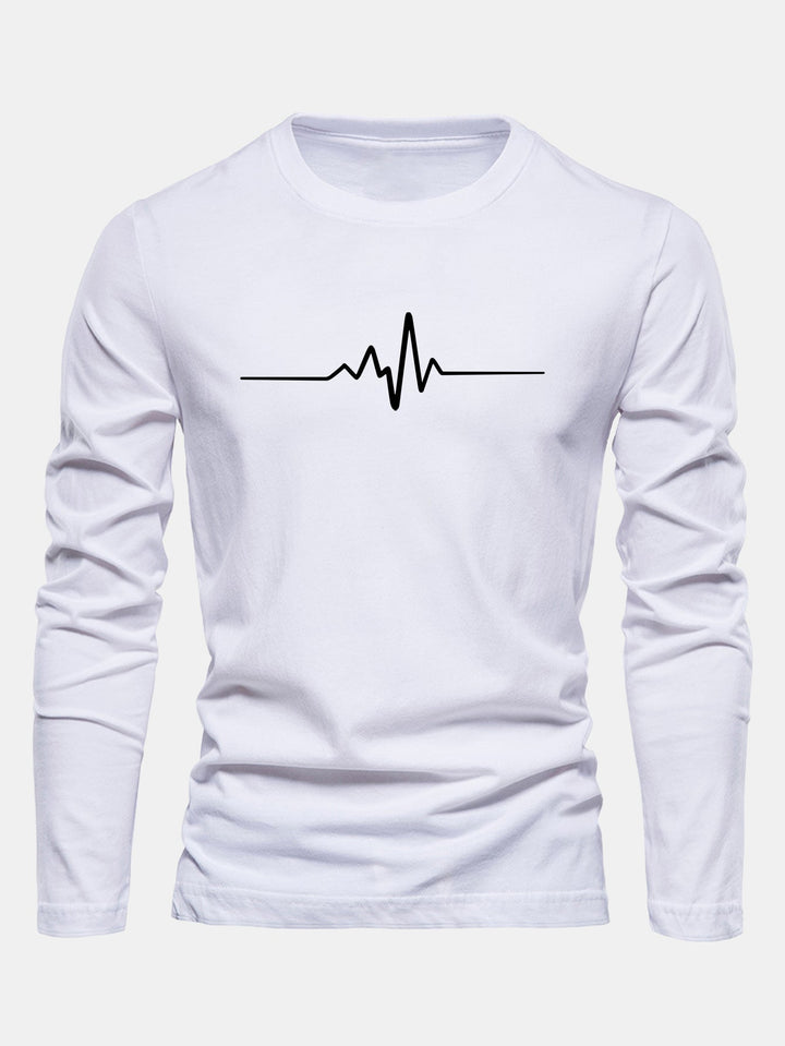 Long Sleeve Heartbeat Print Cotton T-Shirt