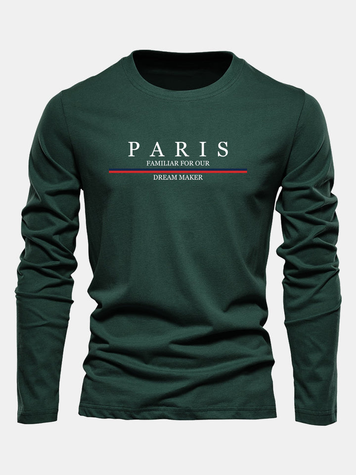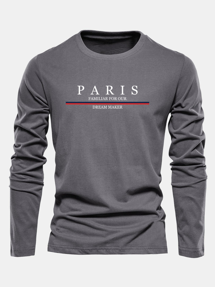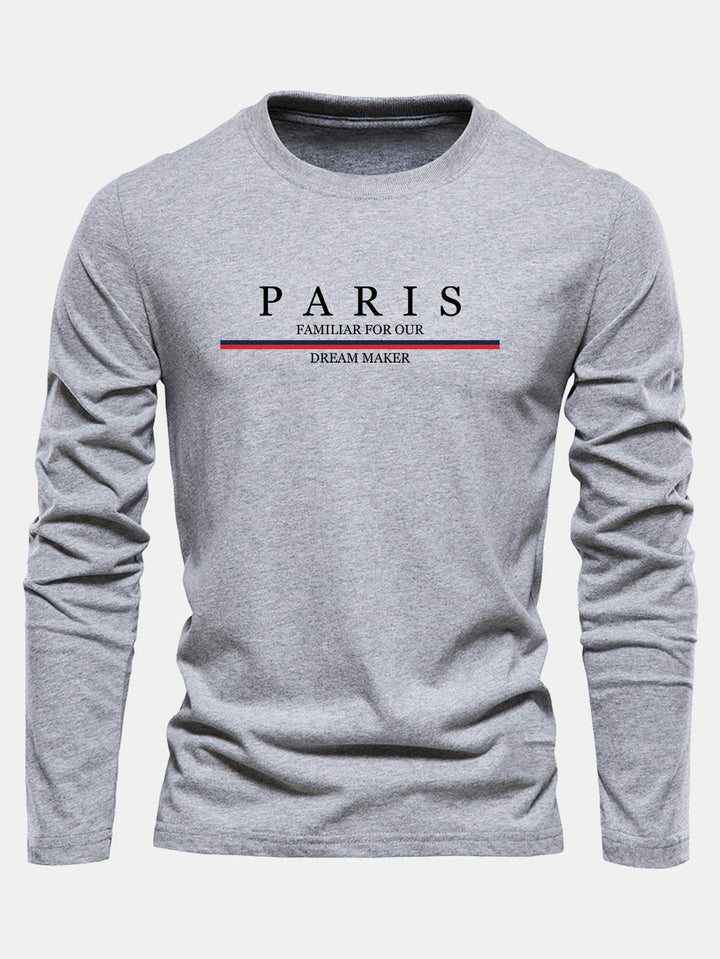 Made from soft, breathable cotton, this tee features a stylish Paris graphic that adds a modern urban touch to your everyday look. With its regular fit and long sleeves, it's perfect for casual wear, layering, or transitioning between seasons.