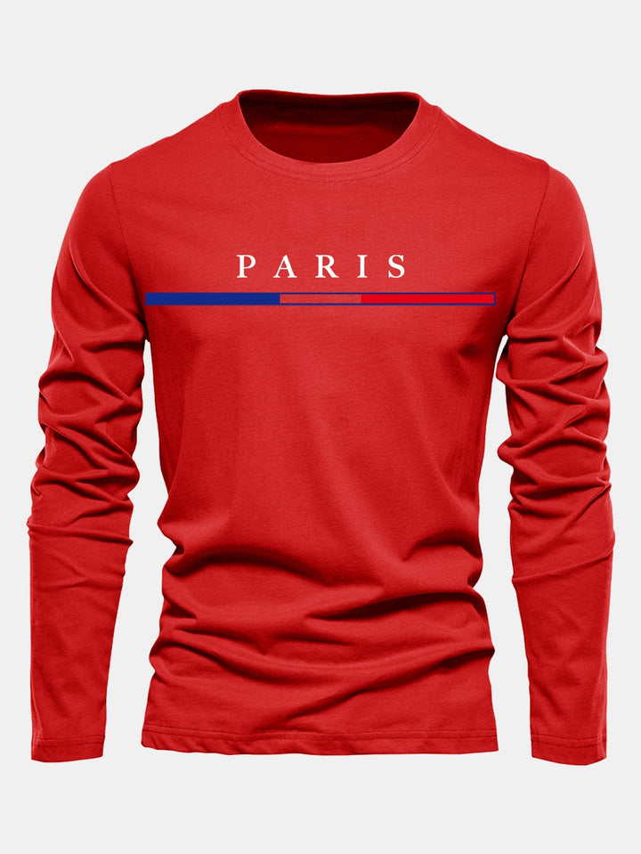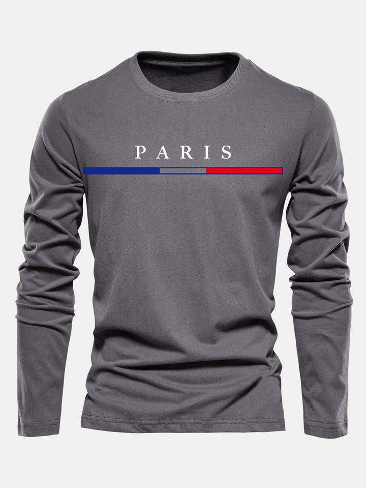 Made from soft, breathable cotton, this tee features a stylish Paris graphic that adds a modern urban touch to your everyday look. With its regular fit and long sleeves, it's perfect for casual wear, layering, or transitioning between seasons.