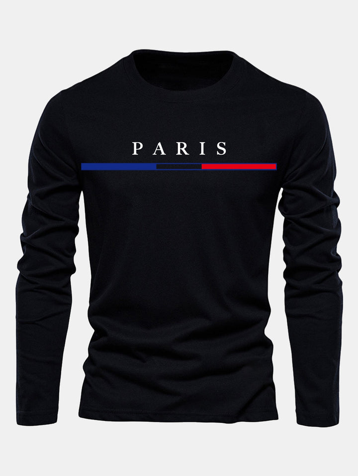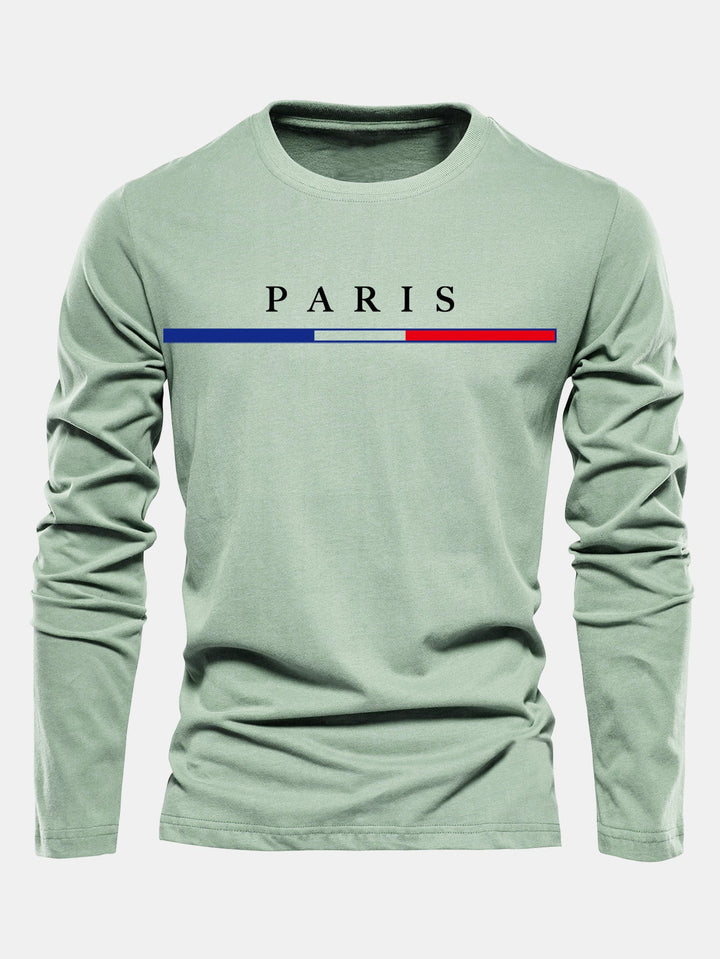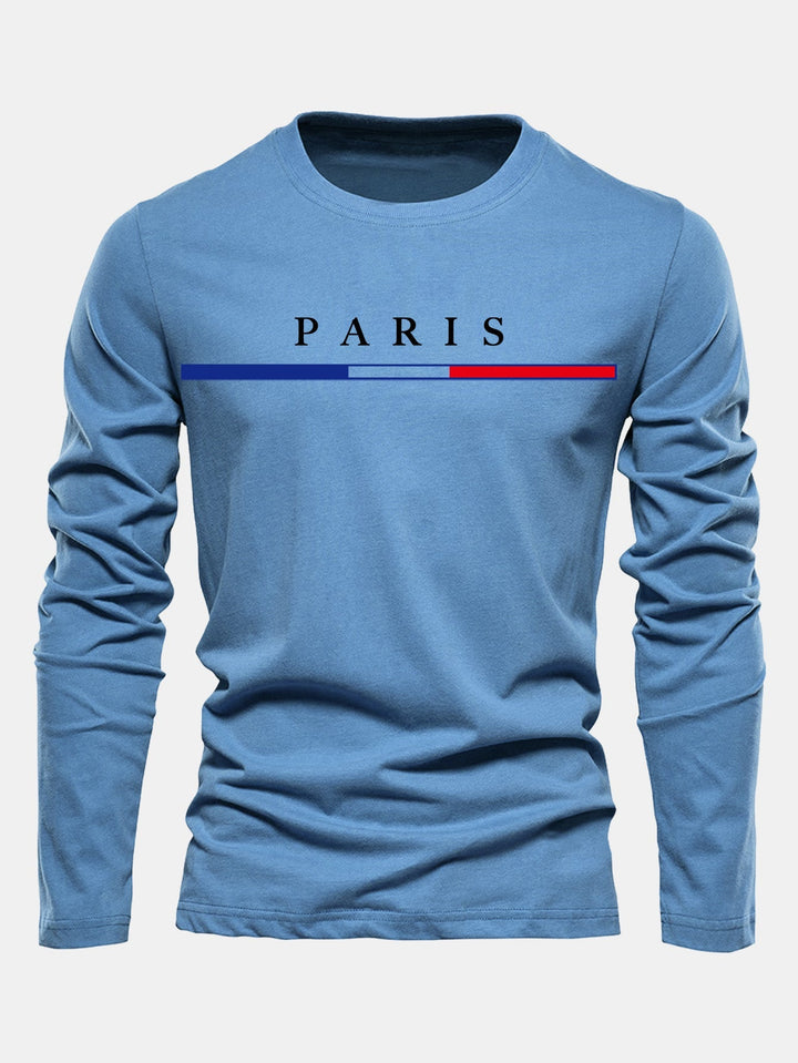 Long Sleeve Printed Cotton T-Shirt - Paris Design