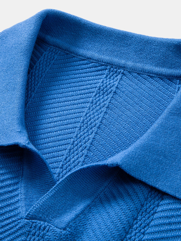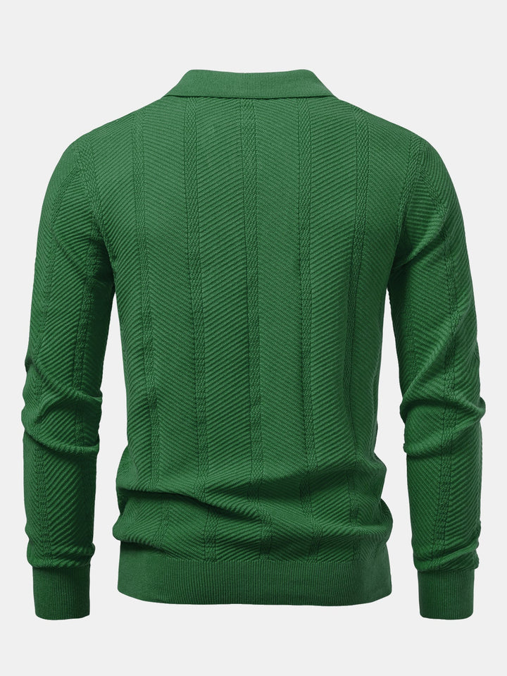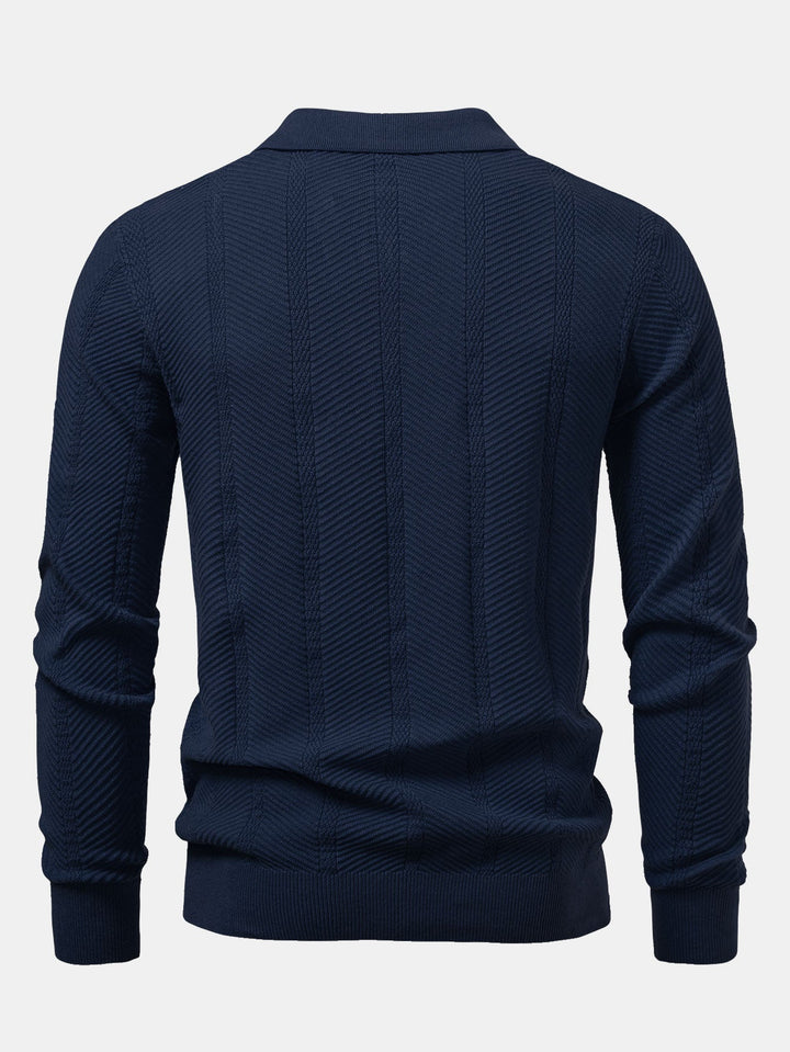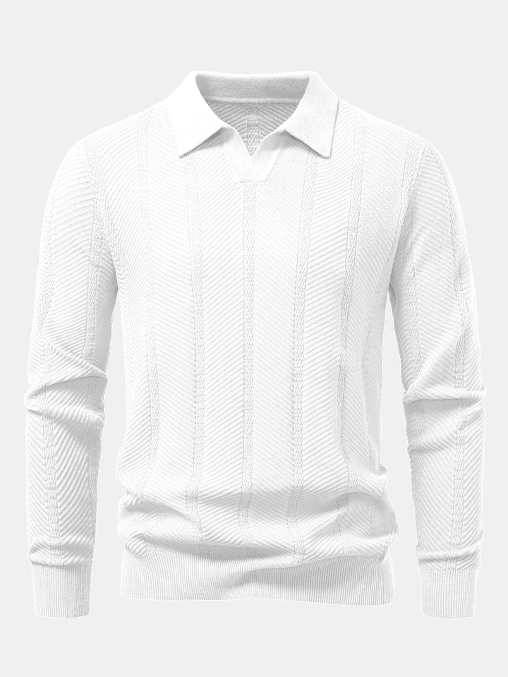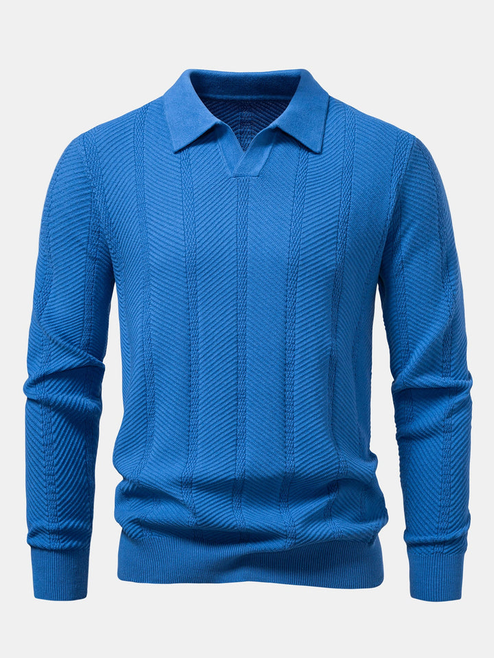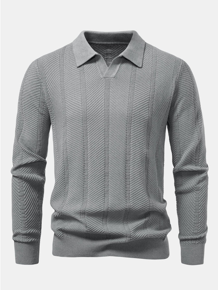 Long Sleeve Stripe V Neck Knit Polo Shirt
