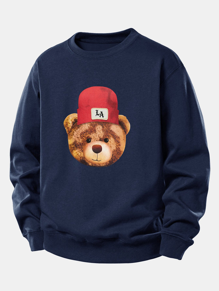 Show off streetwear charm with the Los Angeles bear print relax fit sweatshirt. Featuring a fun bear graphic paired with "Los Angeles" text and a relaxed fit, this sweatshirt blends playful style with everyday comfort.