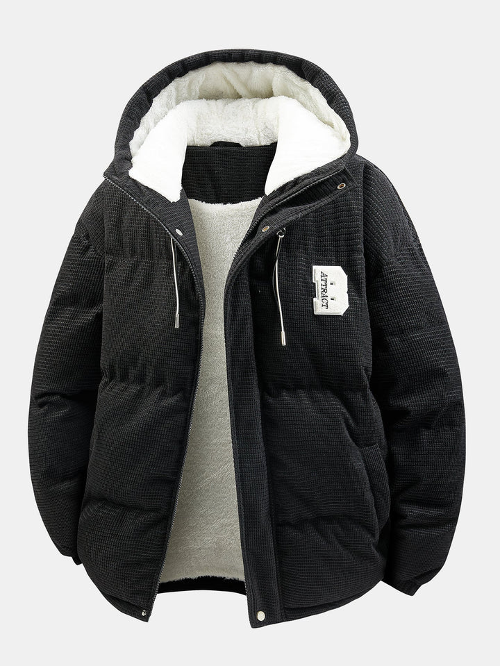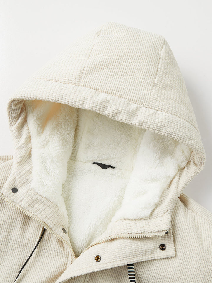 Manteau Puffer à Capuche en Velours Côtelé Doublé en Teddy