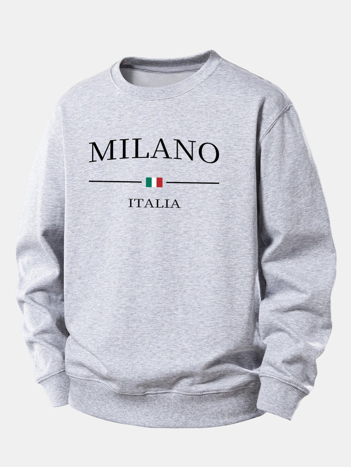 Featuring bold ''Milano'' lettering on soft, cozy fabric, this sweatshirt combines laid-back comfort with stylish city-inspired design. The relaxed fit makes it perfect for layering or wearing on its own, ideal for everyday wear or casual outings.