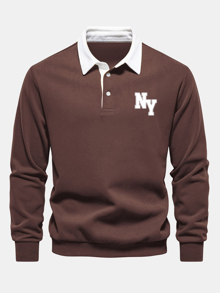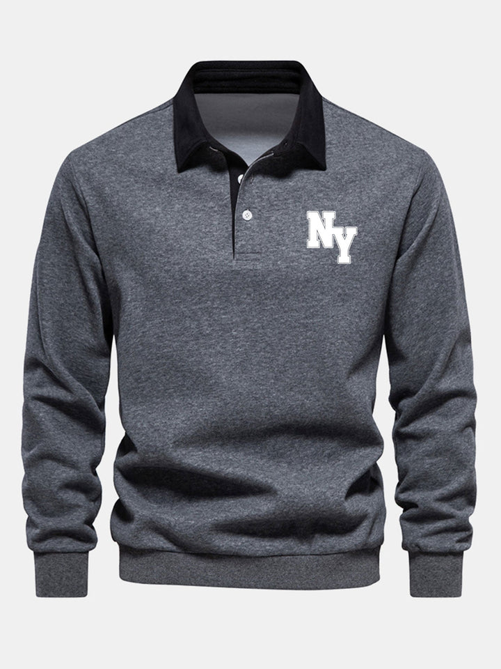 Featuring bold ''New York'' lettering across the front and a stylish contrast polo collar, this sweatshirt combines urban edge with a touch of classic design. The relaxed fit and soft fabric make it a versatile choice for casual wear, streetwear outfits, or layering in cooler weather.