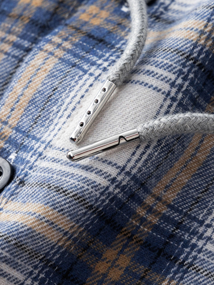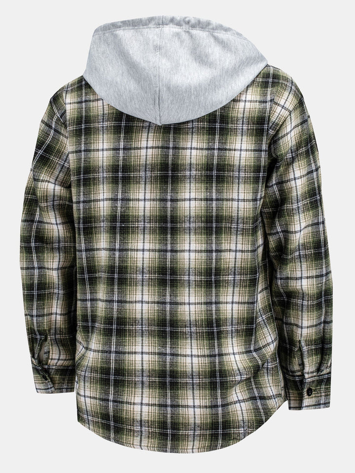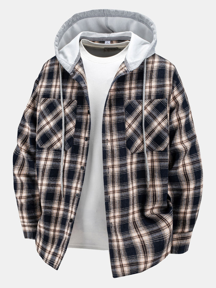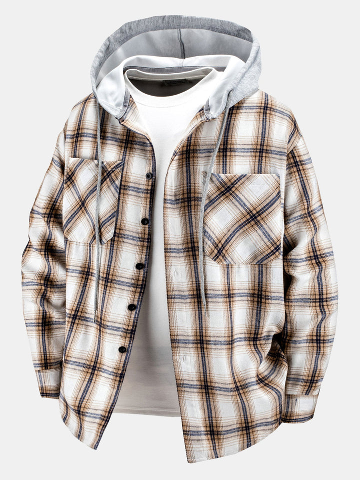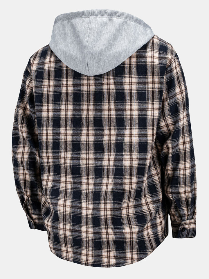 Designed with a classic flannel outer layer and soft fleece lining, this hooded shirt combines the casual look of a plaid shirt with the comfort of a cozy jacket. The hood and button-up design add functionality, making it perfect for layering during autumn and winter. Ideal for casual outings, work, or everyday wear.