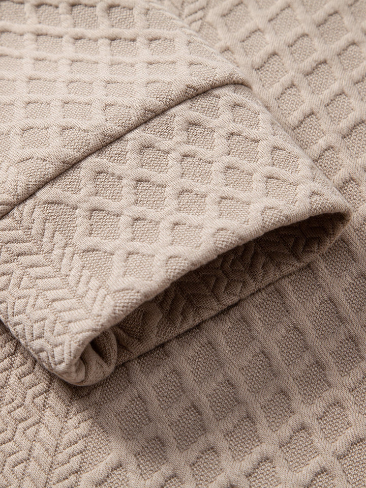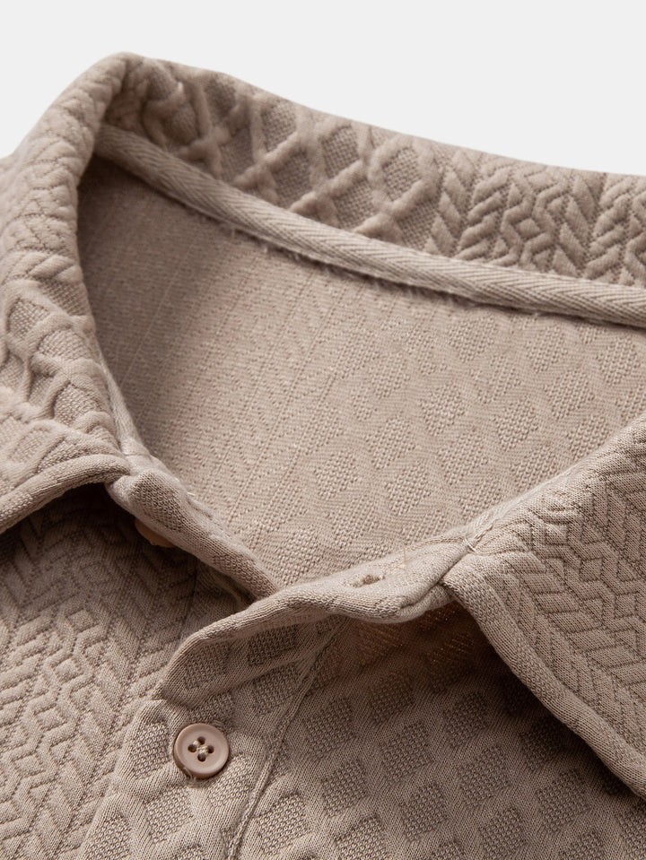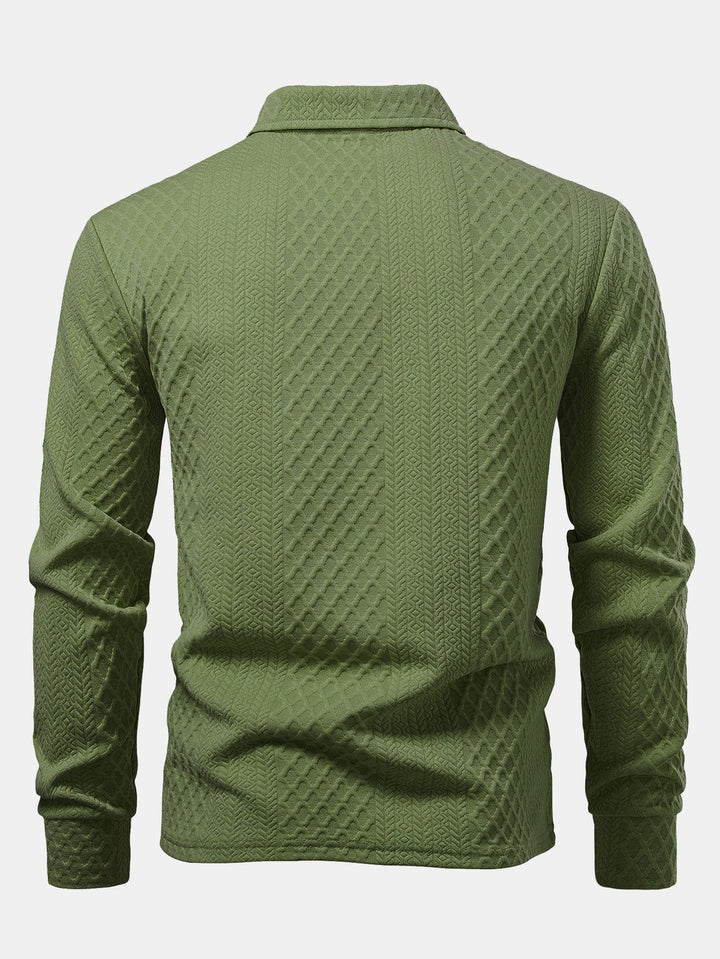 Élevez votre style smart-casual avec ce polo à manches longues, orné d'un motif jacquard géométrique raffiné. Confectionné en tissu doux et respirant, il allie confort et élégance.
