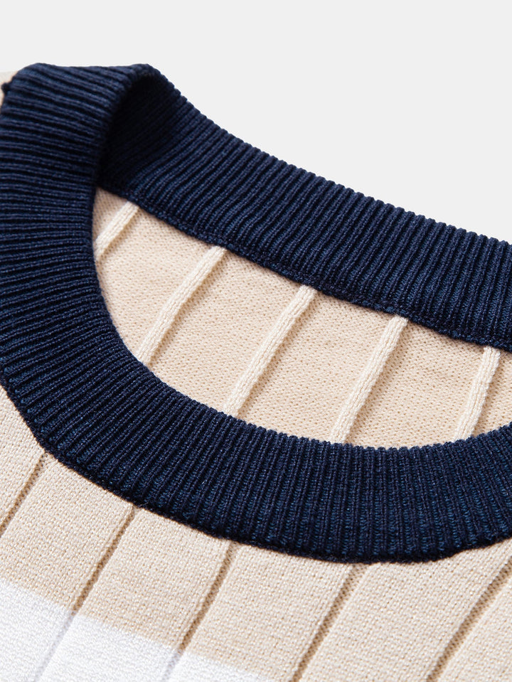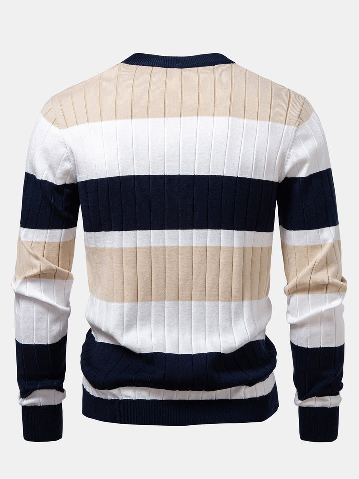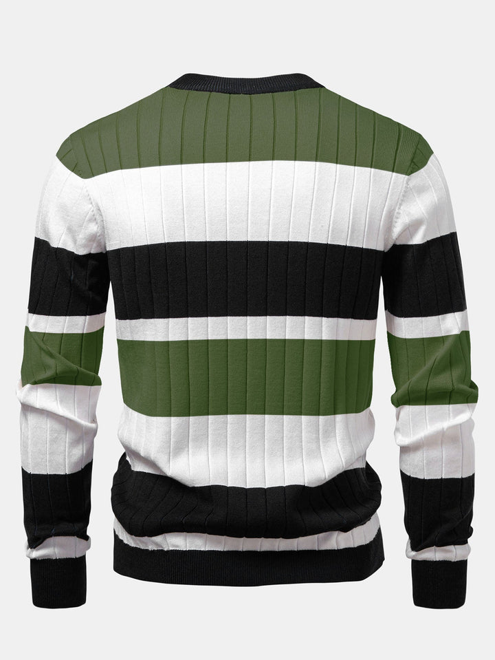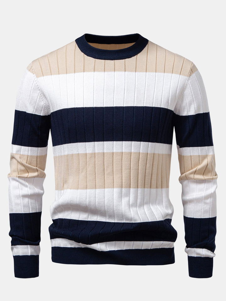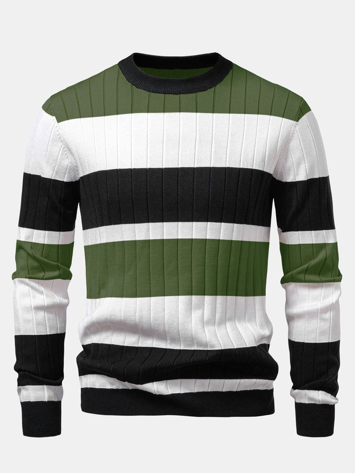 Rafraîchissez votre garde-robe avec notre pull à col rond à rayures contrastées, alliant style décontracté et confort douillet.