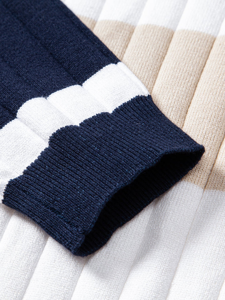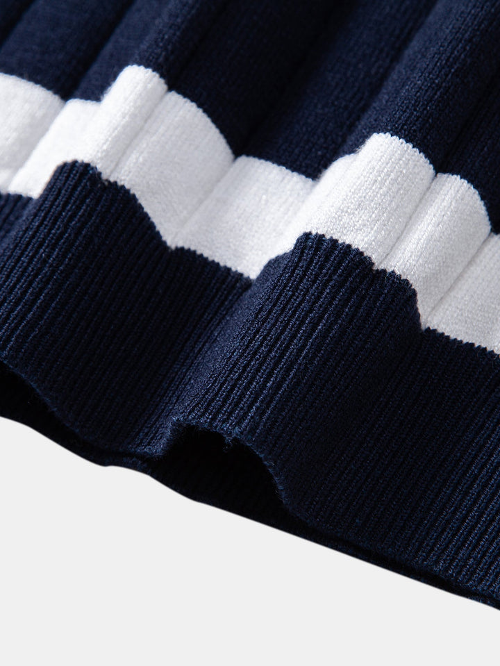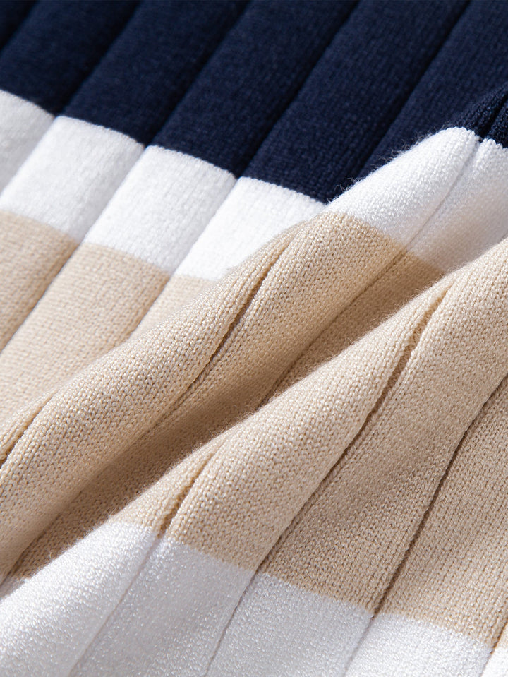 Ce pull se distingue par ses rayures audacieuses, apportant une touche moderne à un design classique, parfait pour superposer ou à porter seul.