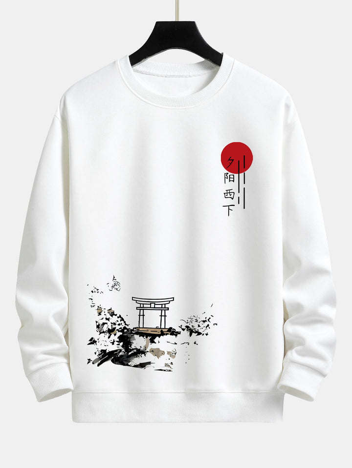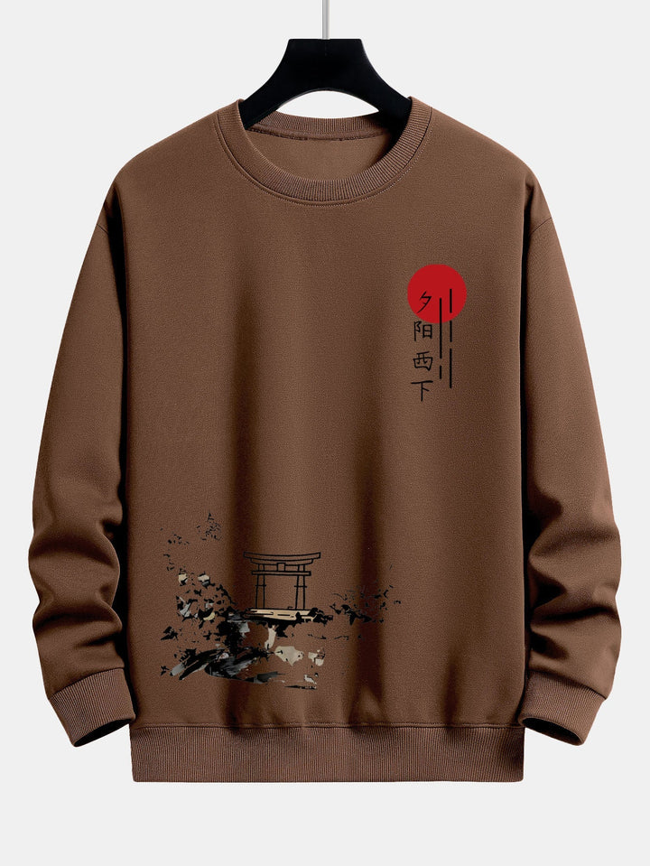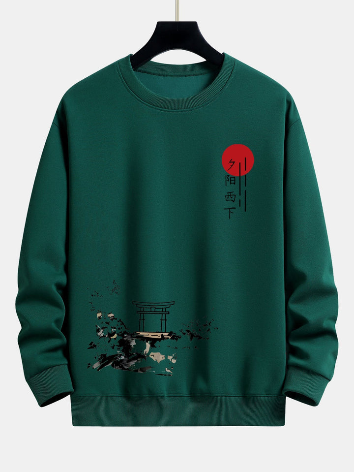 Design Éblouissant : Ce sweat-shirt arbore un graphique inspiré du coucher de soleil sur un tissu doux et confortable, alliant flair artistique et confort décontracté.