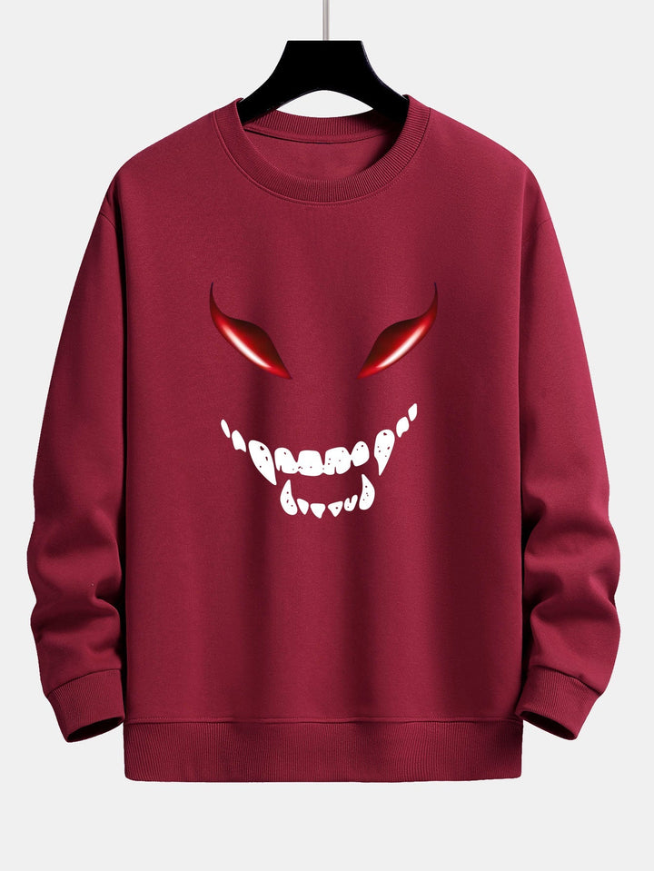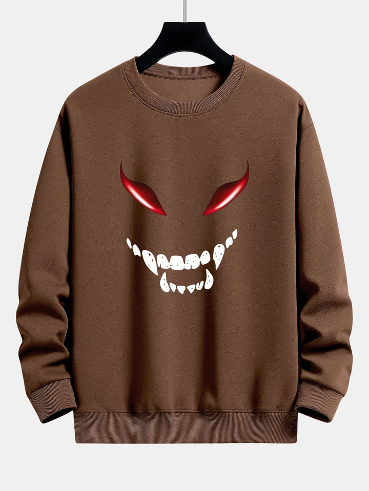 Pull Décontracté avec Imprimé de Visage Effrayant