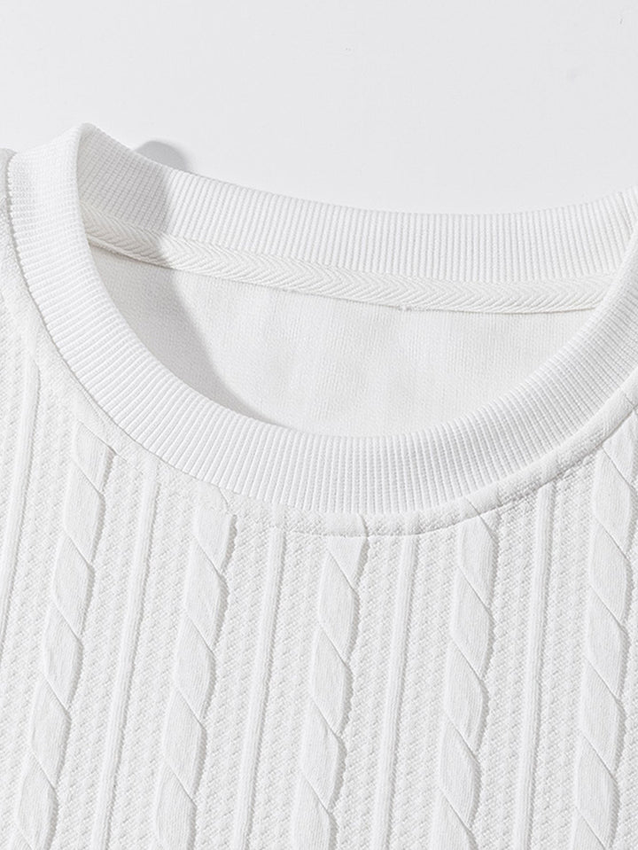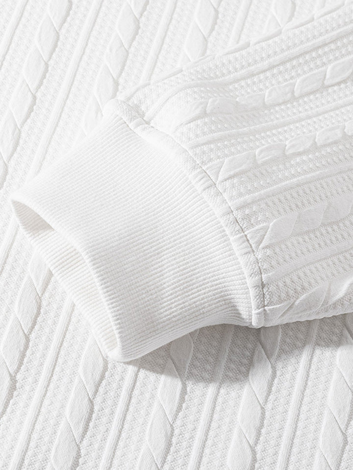 Rafraîchissez votre garde-robe avec notre sweat-shirt à col rond en jacquard, alliant confort douillet et style moderne. Sa texture en tricot jacquard unique ajoute profondeur et caractère à une silhouette intemporelle.