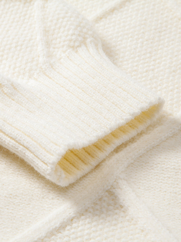 Design Élégant et Confortable: Ce pull arbore un motif en jacquard torsadé unique qui allie modernité et confort douillet.