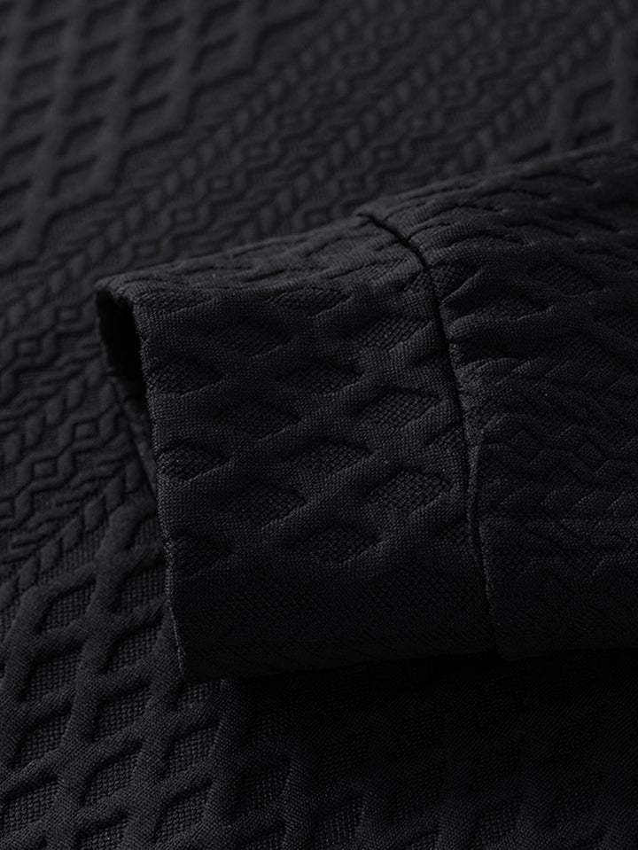 Stand out in style with the geometric jacquard crew neck sweatshirt. Featuring intricate geometric patterns woven into a classic crew neck silhouette, this sweatshirt adds modern edge to timeless casual wear.