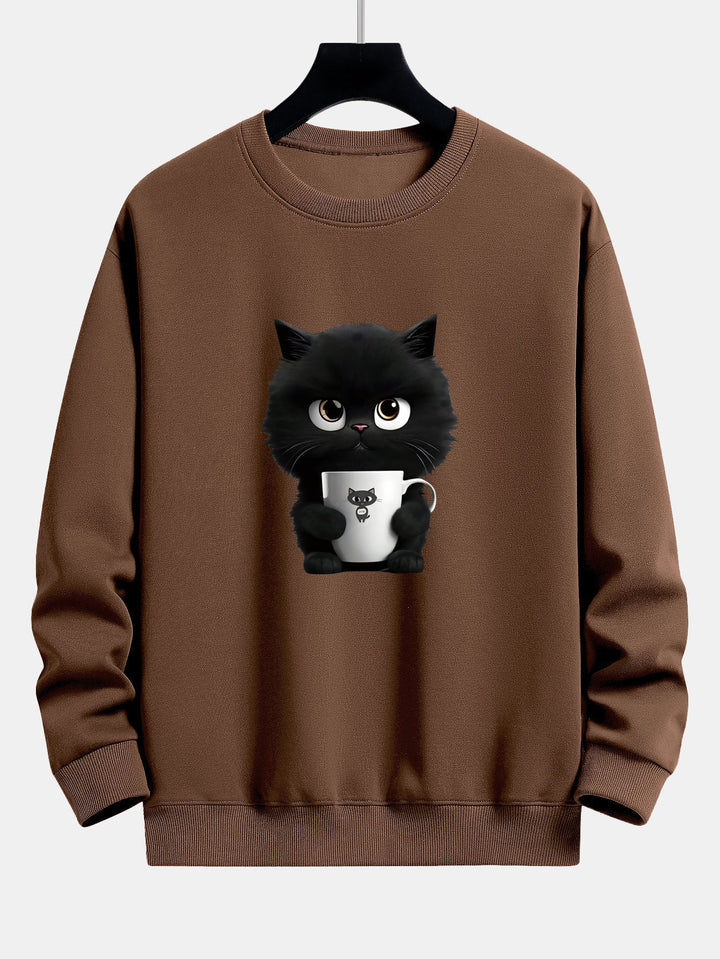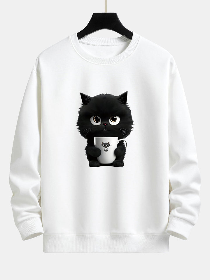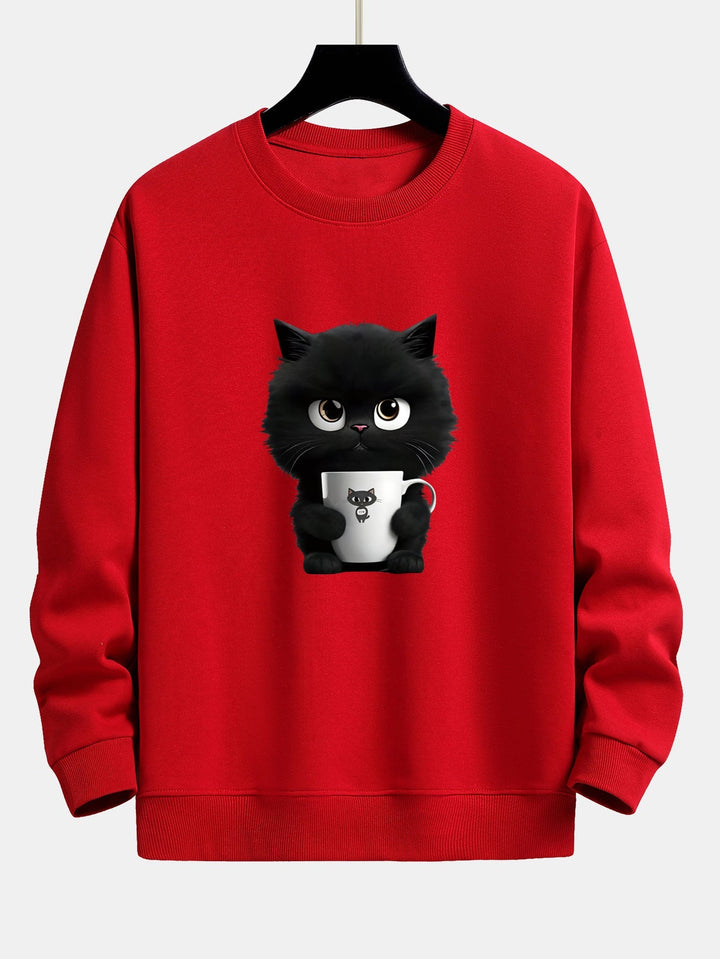 Relaxed Fit Black Cat Graphic Sweatshirt