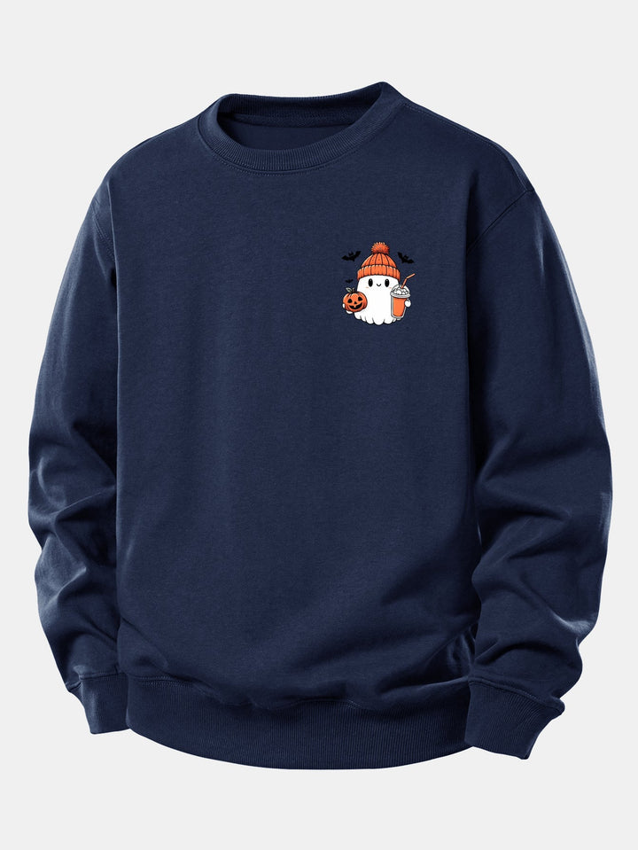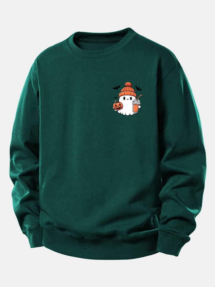 Relaxed Fit Halloween Pumpkin Ghost Graphic Sweatshirt