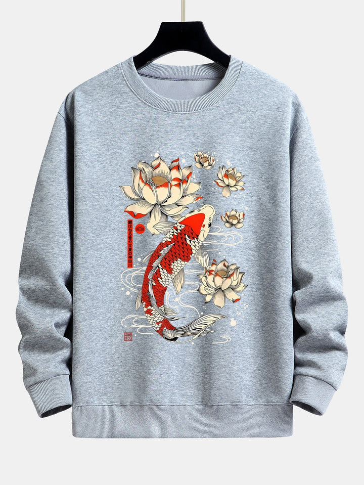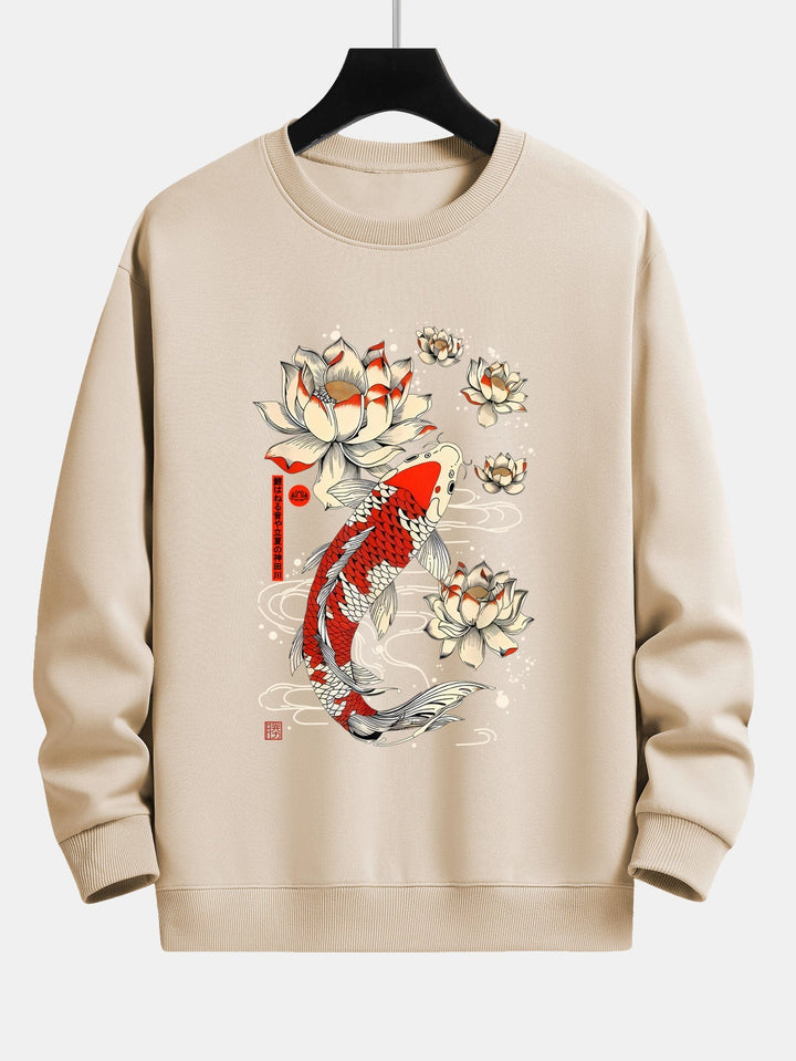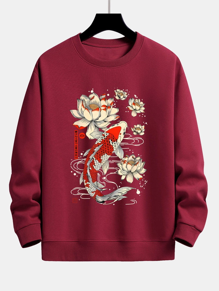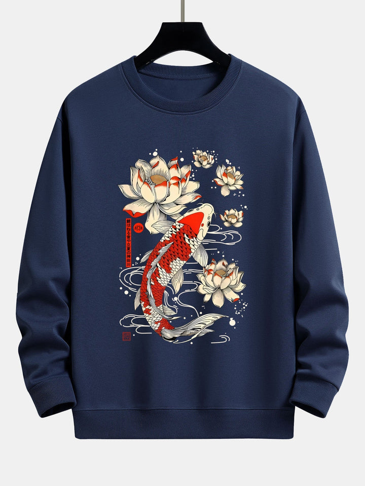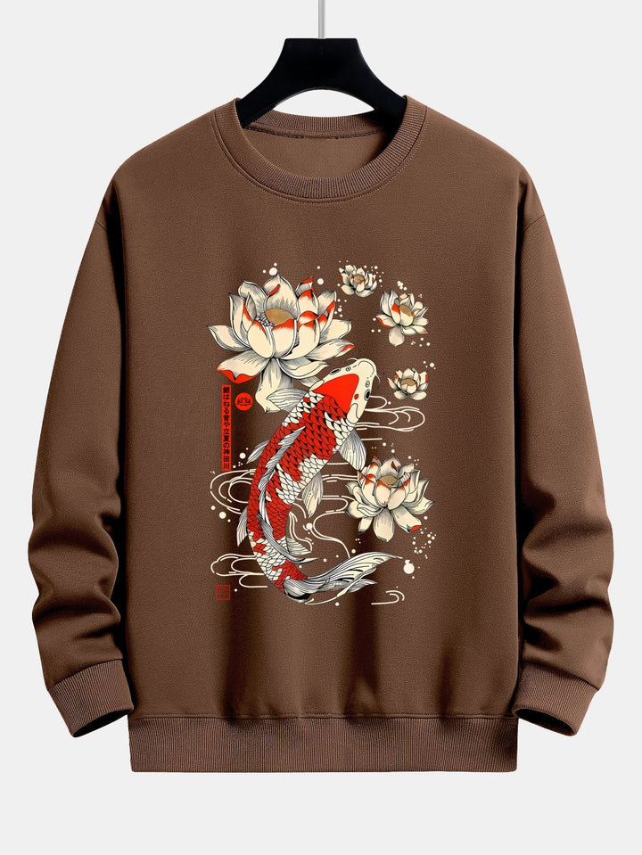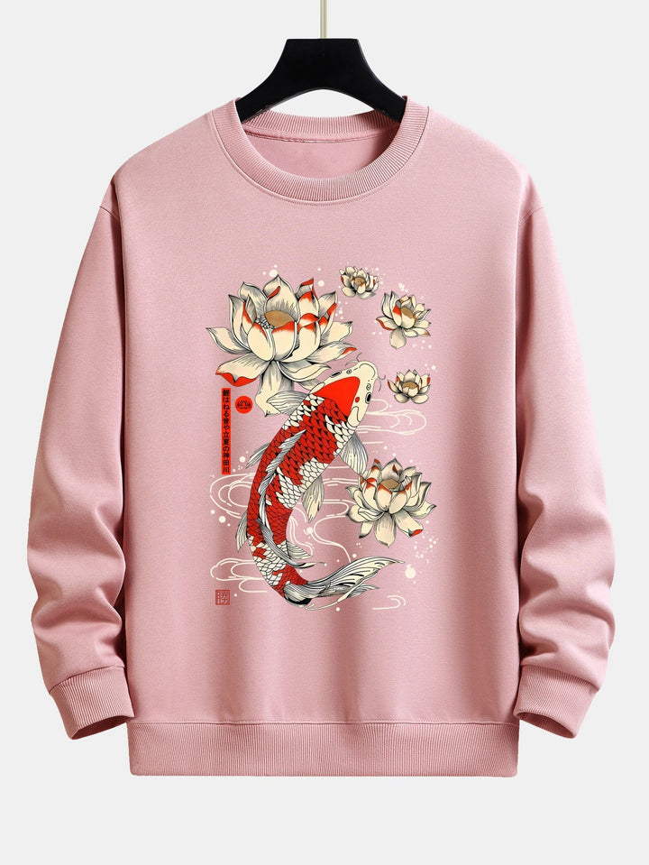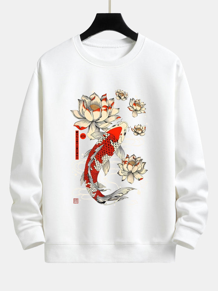 Relaxed Fit Koi Fish and Lotus Print Sweatshirt