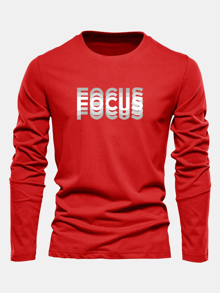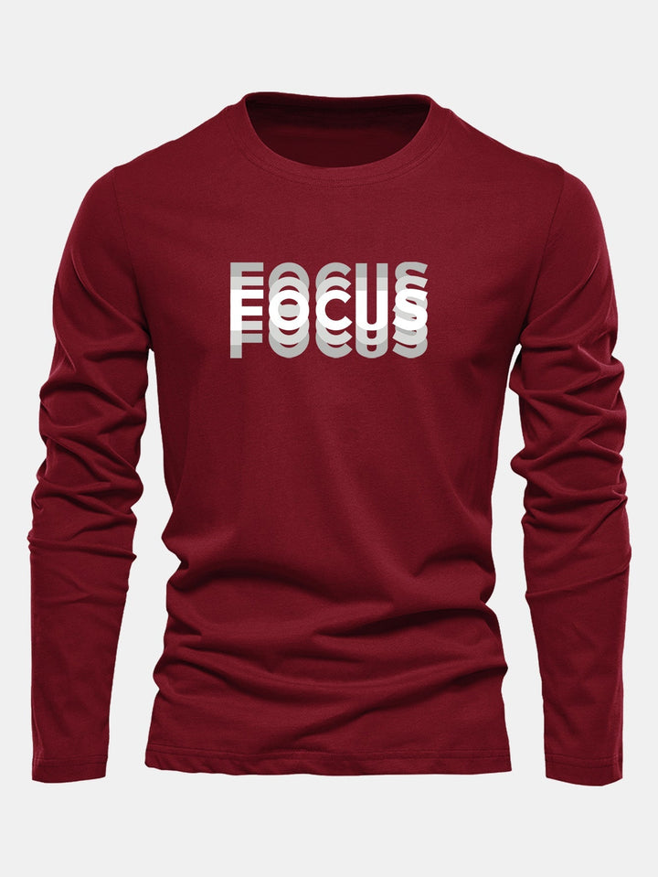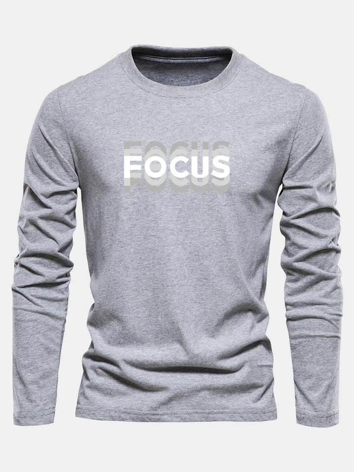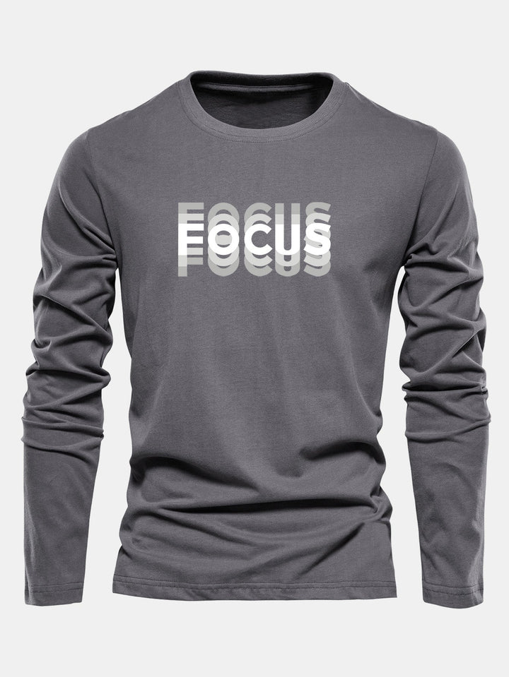 Design : Ce t-shirt à manches longues avec imprimé "focus" est un rappel quotidien pour garder les yeux sur l'objectif. Sa typographie minimaliste et son confort tout au long de la journée en font un essentiel de garde-robe.