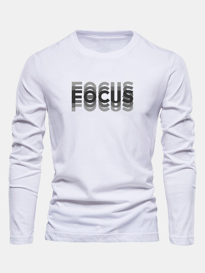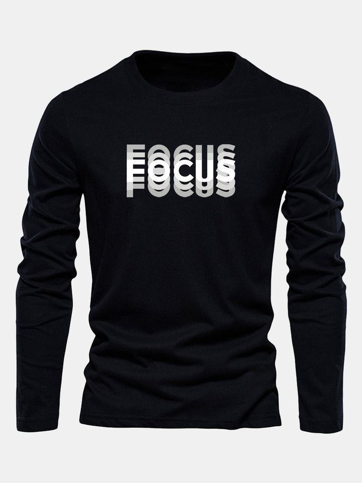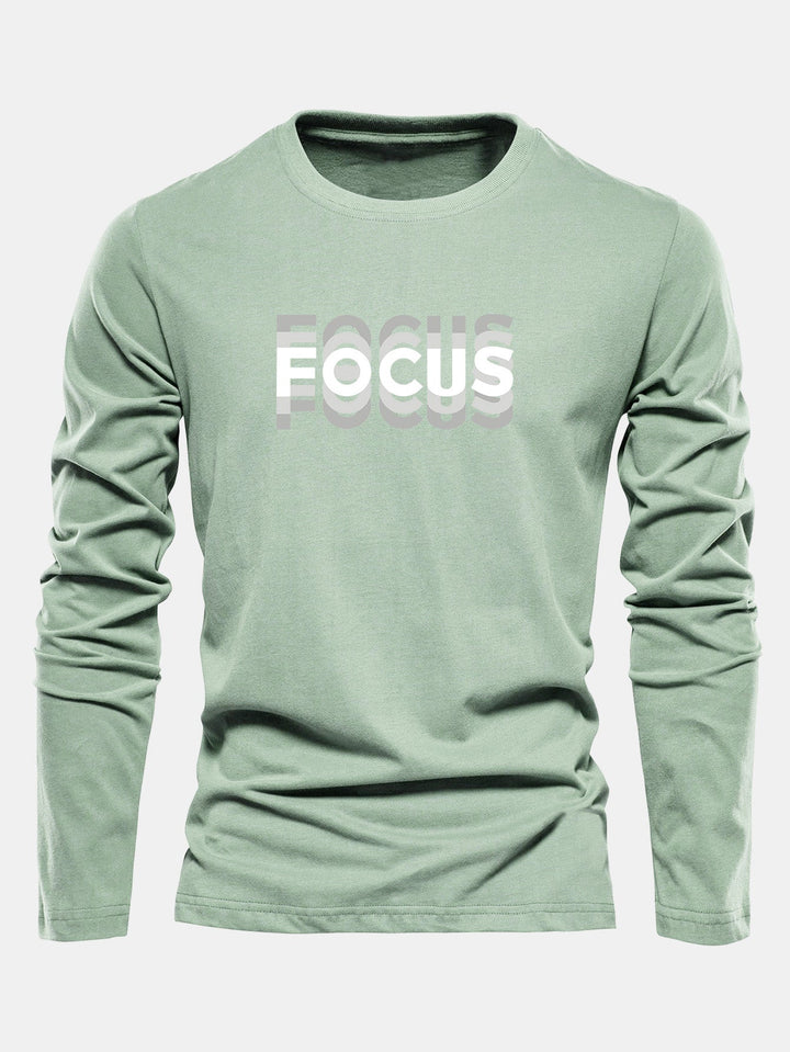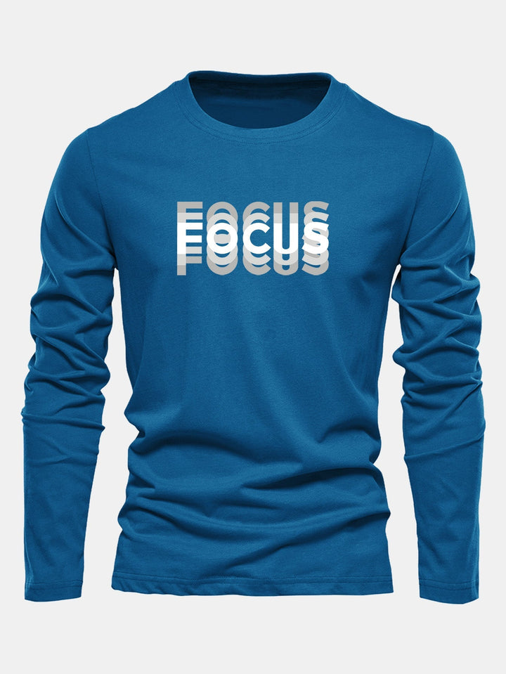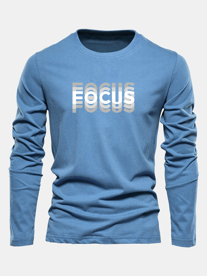 Design : Ce t-shirt à manches longues avec imprimé "focus" est un rappel quotidien pour garder les yeux sur l'objectif. Sa typographie minimaliste et son confort tout au long de la journée en font un essentiel de garde-robe.