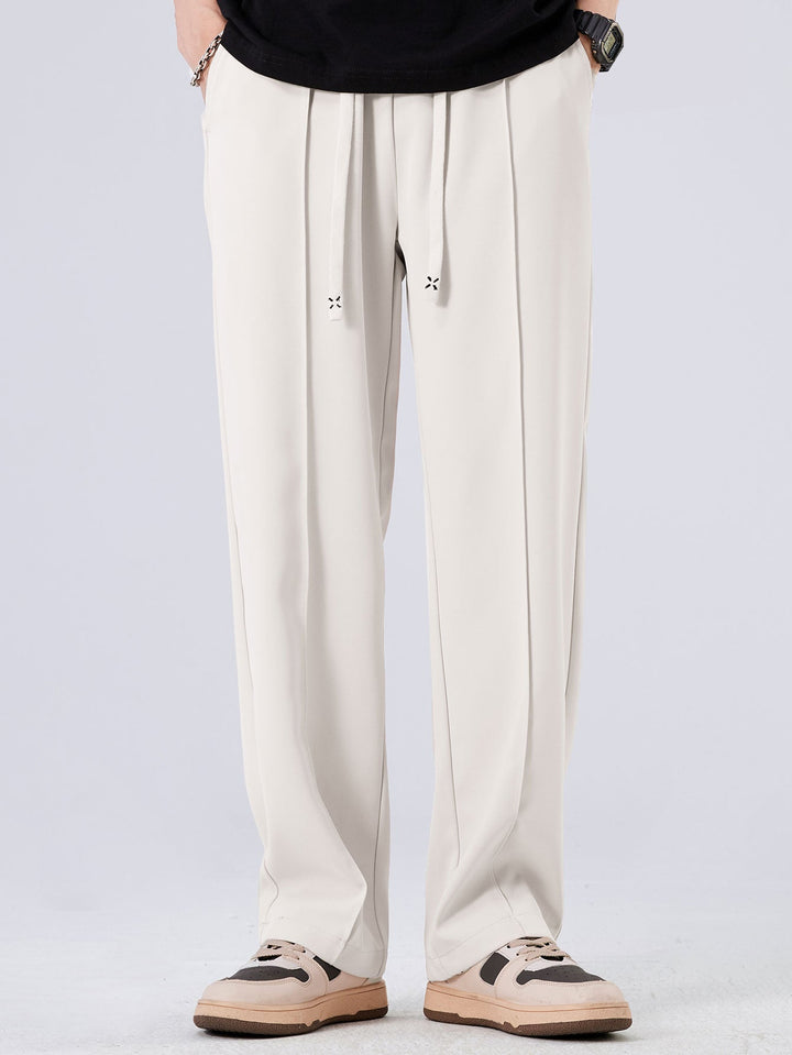 Améliorez votre garde-robe avec cet ensemble polyvalent, parfait pour toutes les occasions décontractées. Il comprend un t-shirt à manches longues 2 en 1 en tricot gaufré et un pantalon droit à cordon de serrage à plis simples.