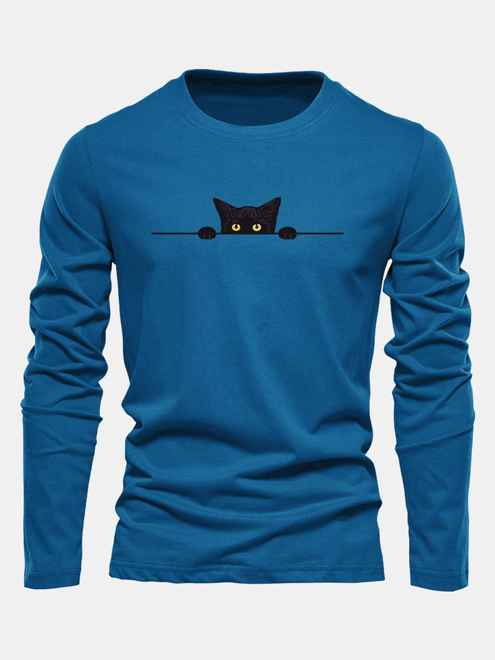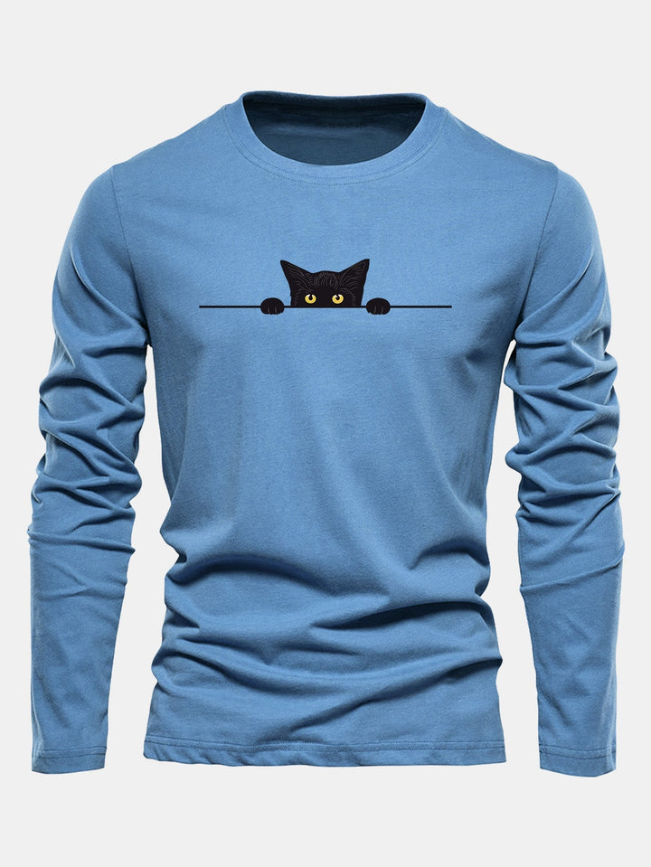 Design : Audacieux, élégant et mystérieux, ce t-shirt à manches longues avec un imprimé de chat noir ajoute une touche de charme félin à votre garde-robe quotidienne.