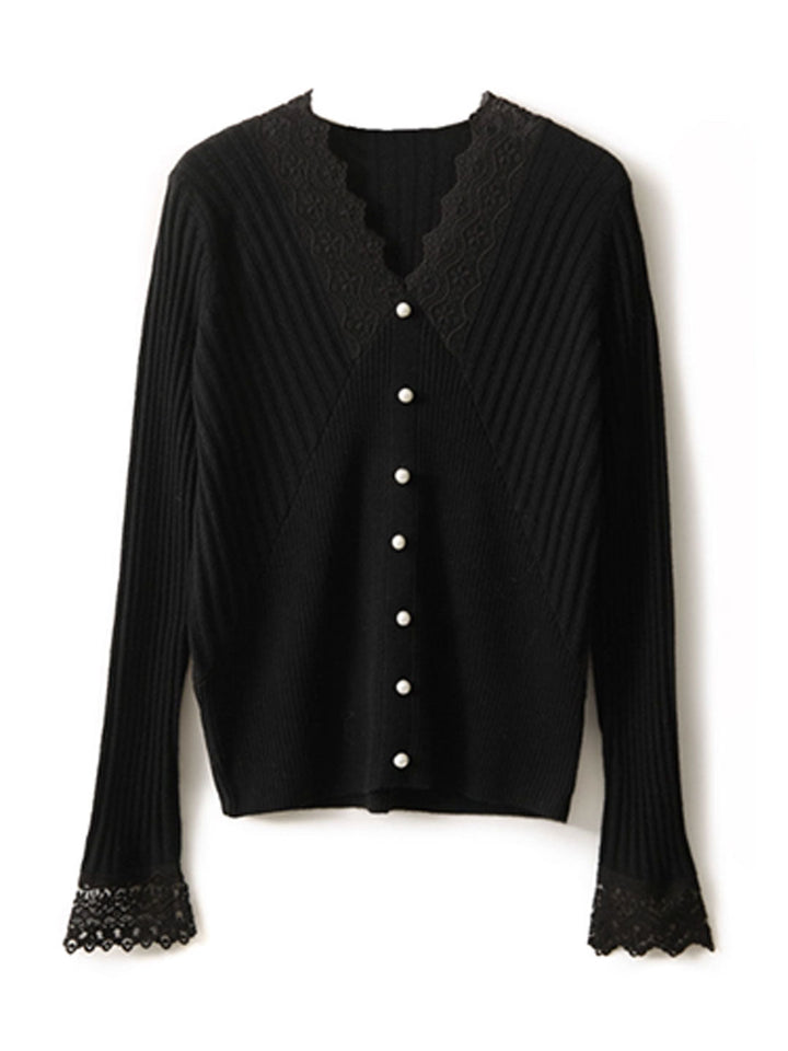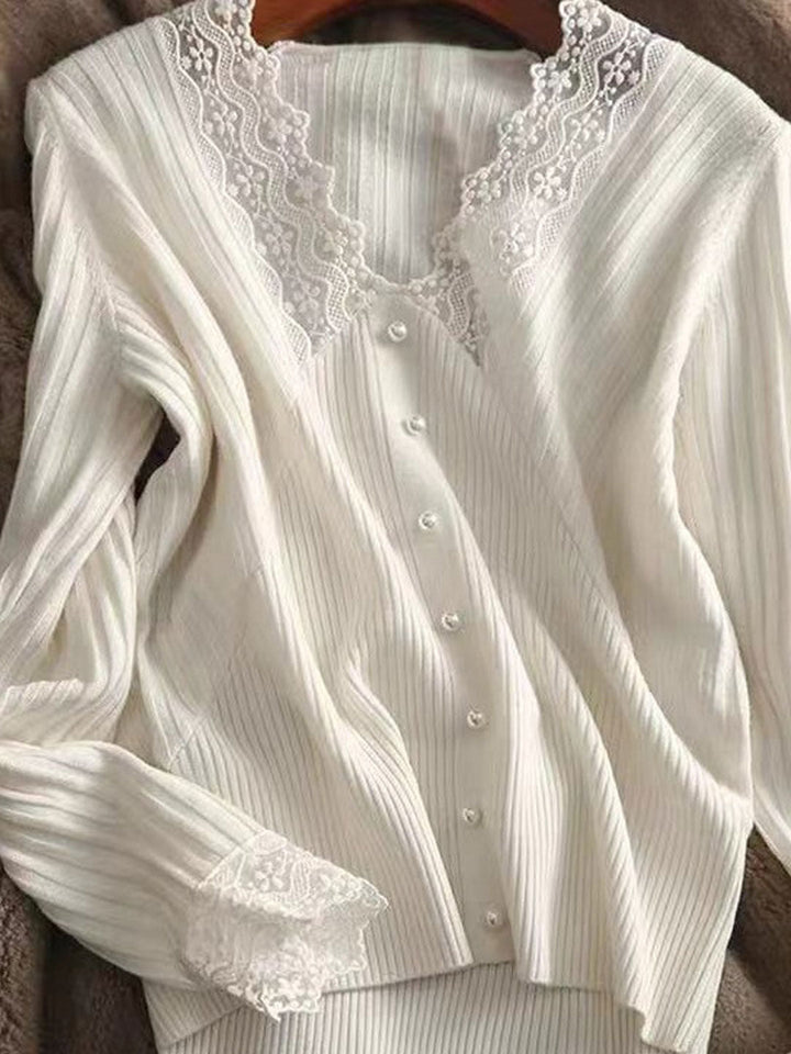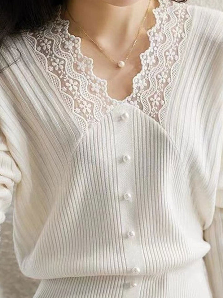 Top en dentelle tricoté élégant à col en V creux Victoria