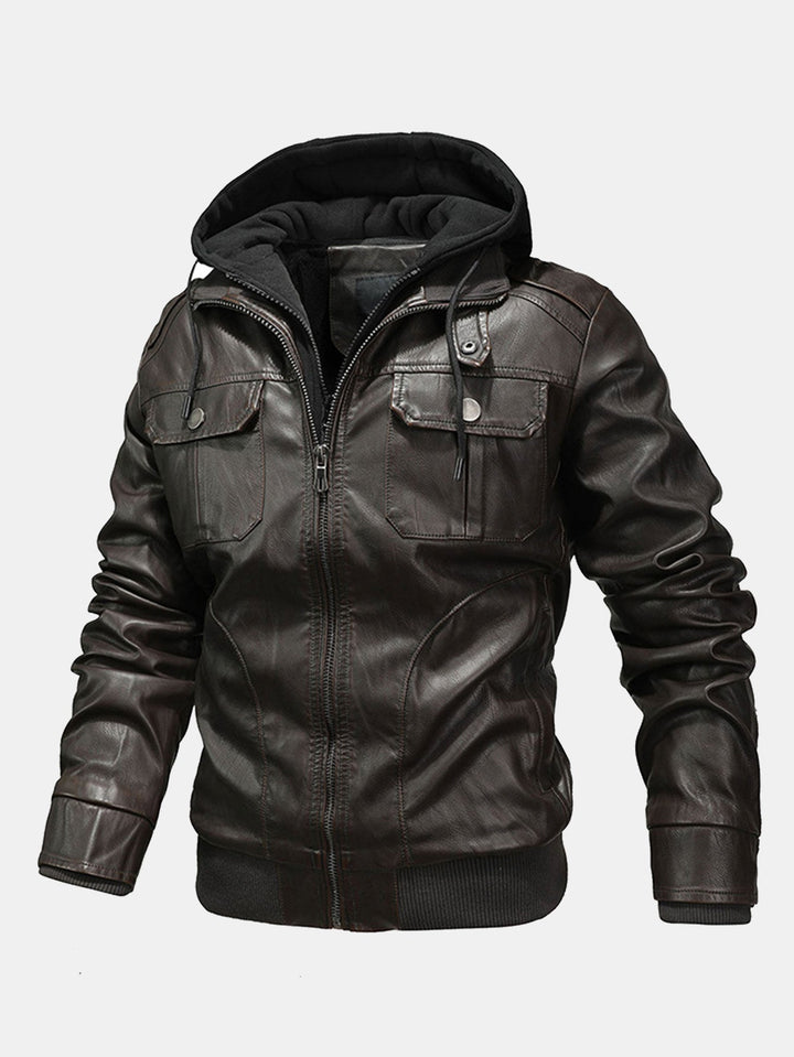 Veste 2 en 1 en cuir PU avec capuche amovible