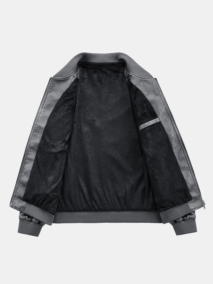 Veste Bomber en Cuir Vieilli avec Doublure en Fleece
