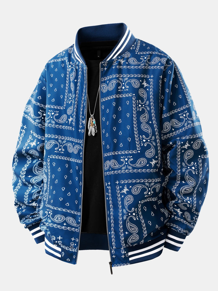 Faites une déclaration de style audacieuse avec notre veste à col montant et motif cachemire. Son motif complexe et son col élégant allient couture moderne et design vintage, idéale pour ceux qui aiment se démarquer.