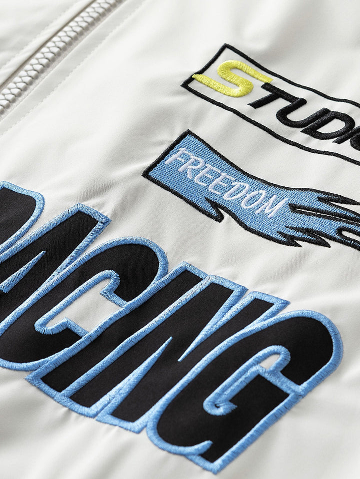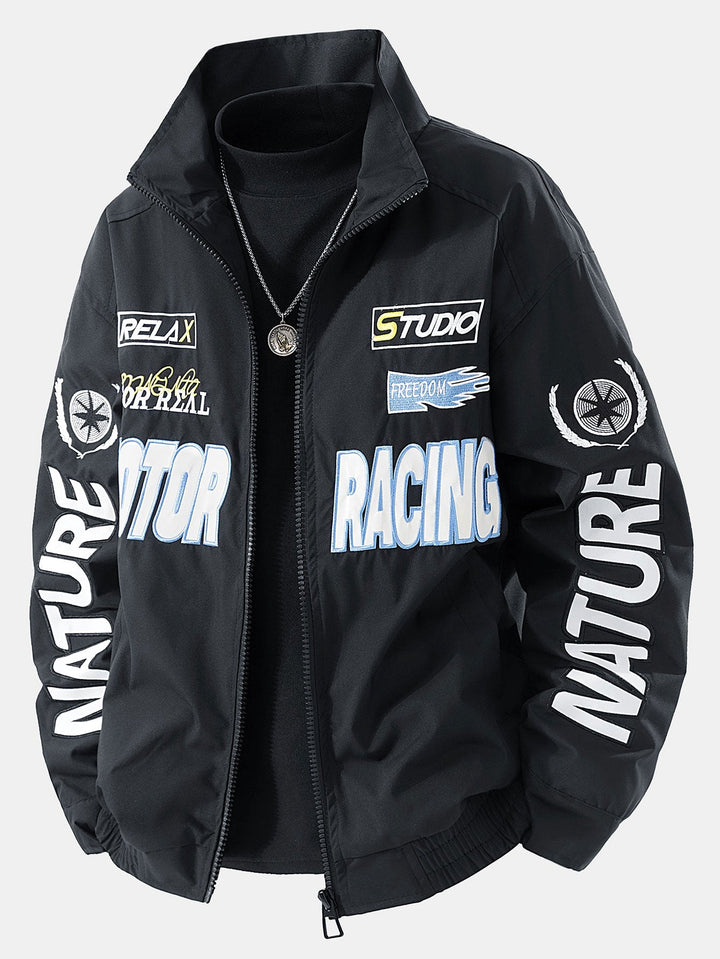 Veste Bombardier de Course Streetwear: Apportez un style haute octane à votre garde-robe avec cette pièce unique. Inspirée par l'esthétique du sport automobile, elle allie attitude streetwear et design fonctionnel pour un look polyvalent et accrocheur.